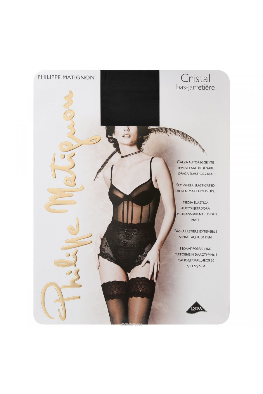 Эластичные матовые чулки Philippe Matignon Cristal Bas-Jarretiere (Nero) с кружевной каймой и невидимым мыском. Резинка - на силиконовой основе. Плотность: 30 den.