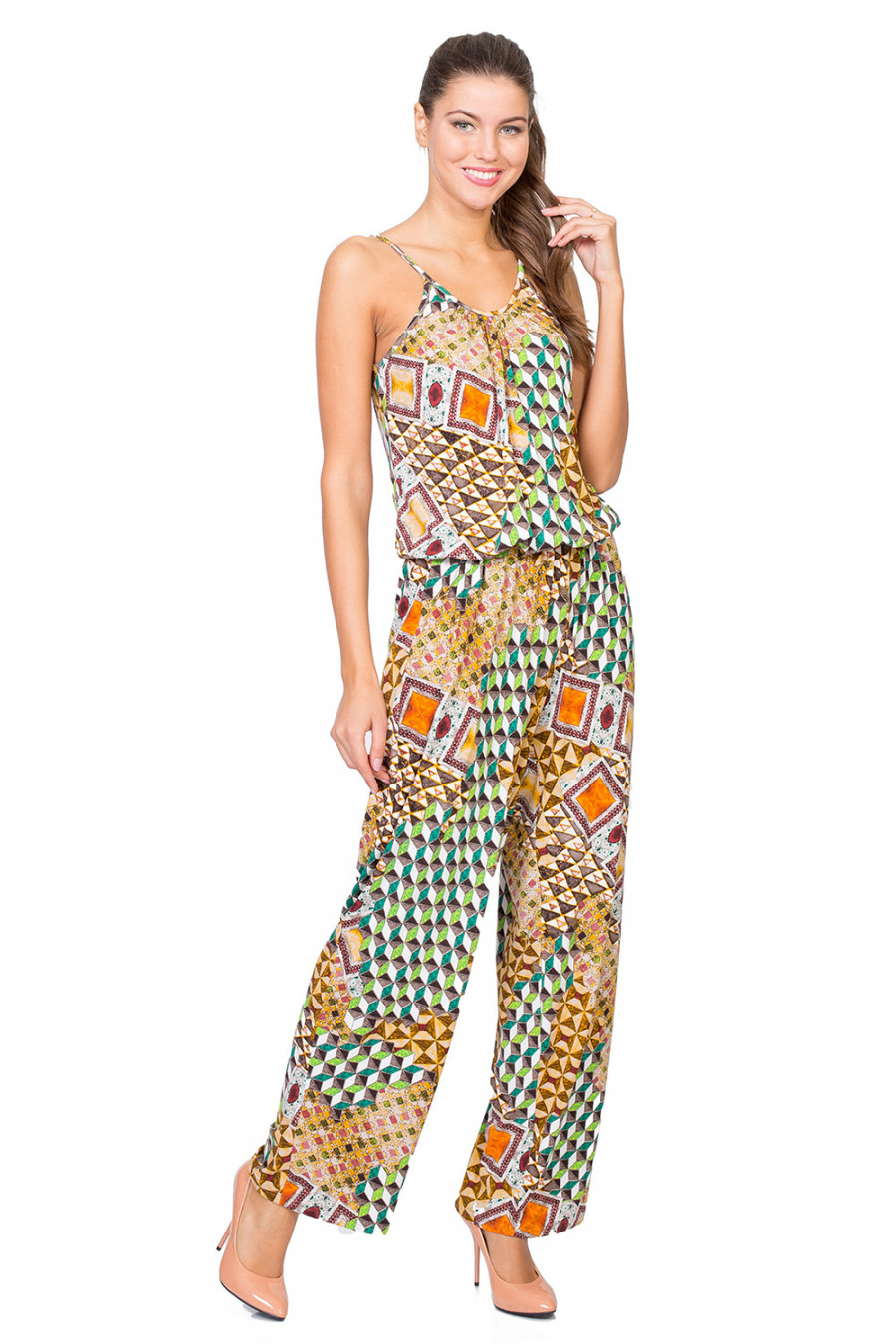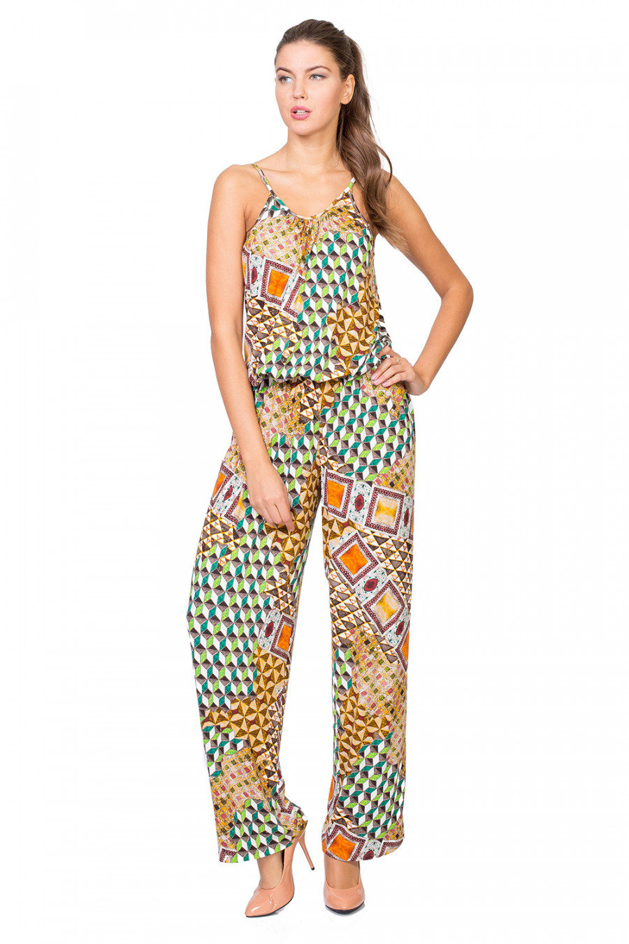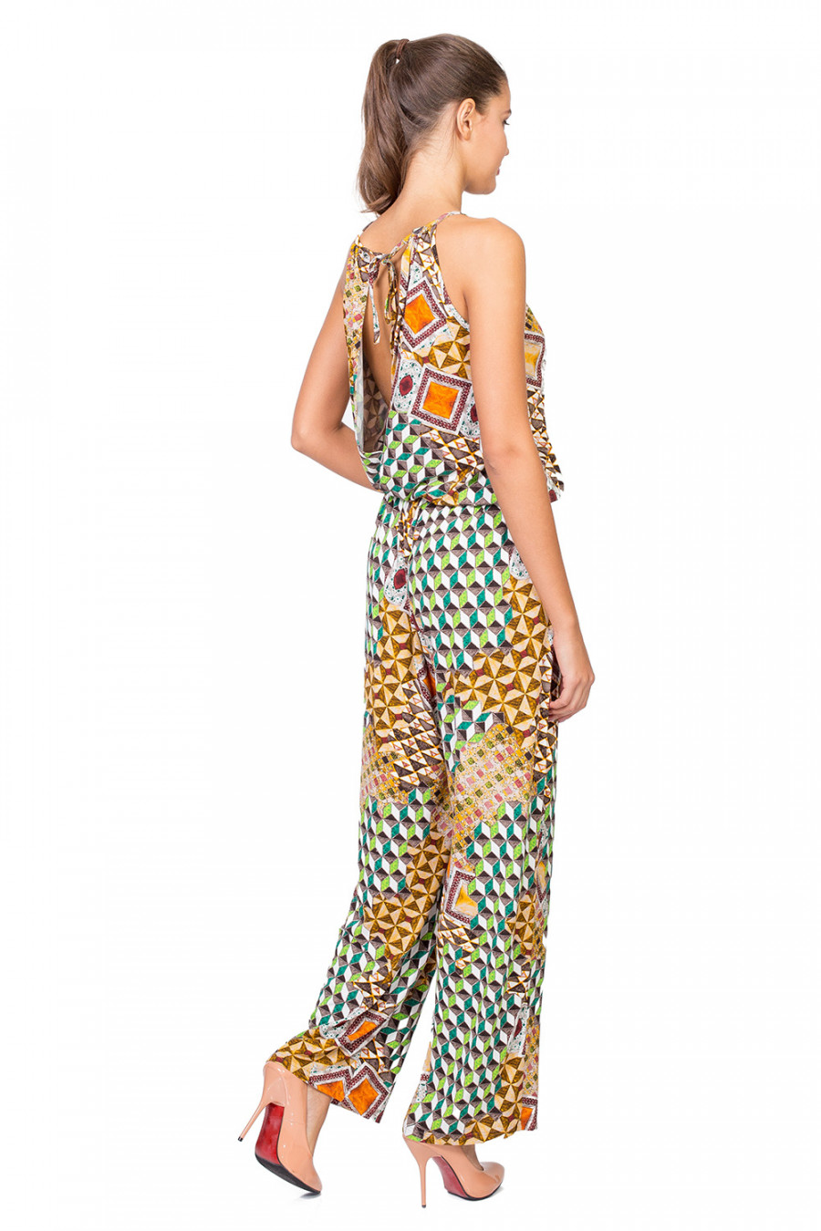 Летний воздушный комбинезон на завязках, с открытой спиной, с длинными широкими штанами.