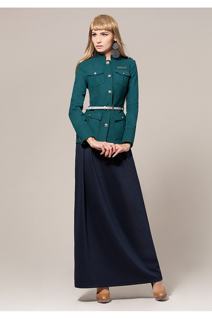 Универсальный костюм, состоящий из длинной юбки и жакета. Отлично подойдет для офиса и для повседневной носки.