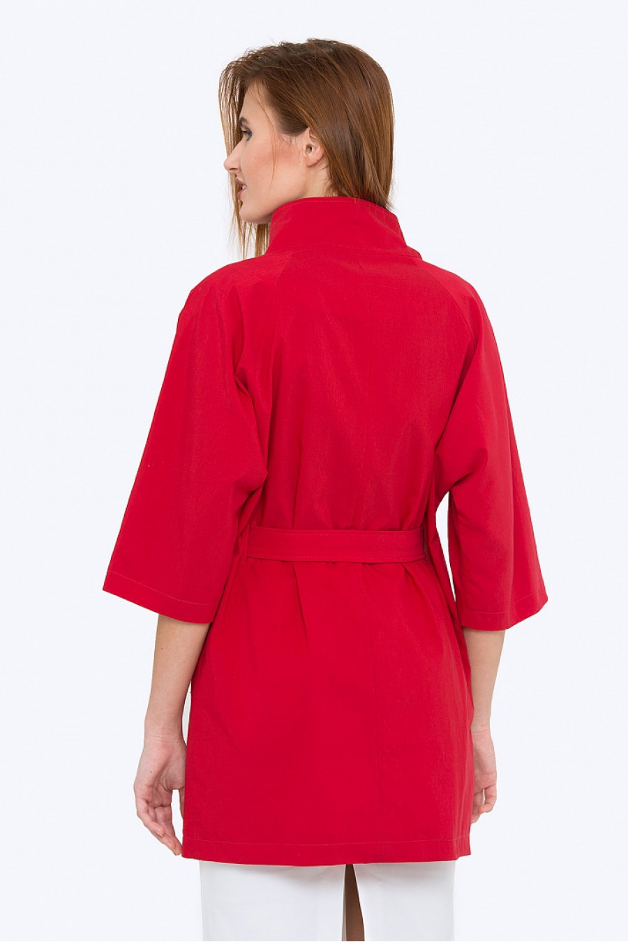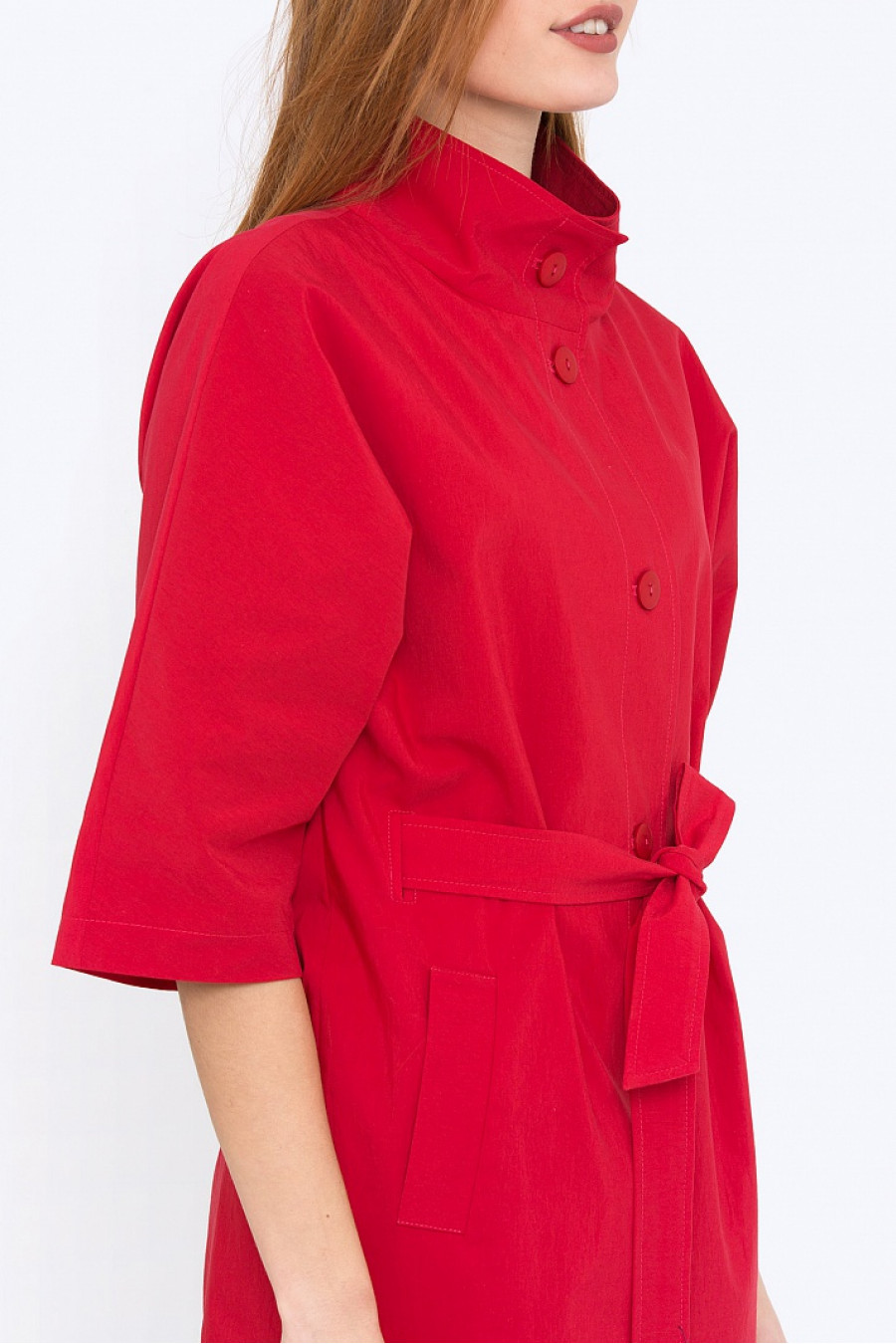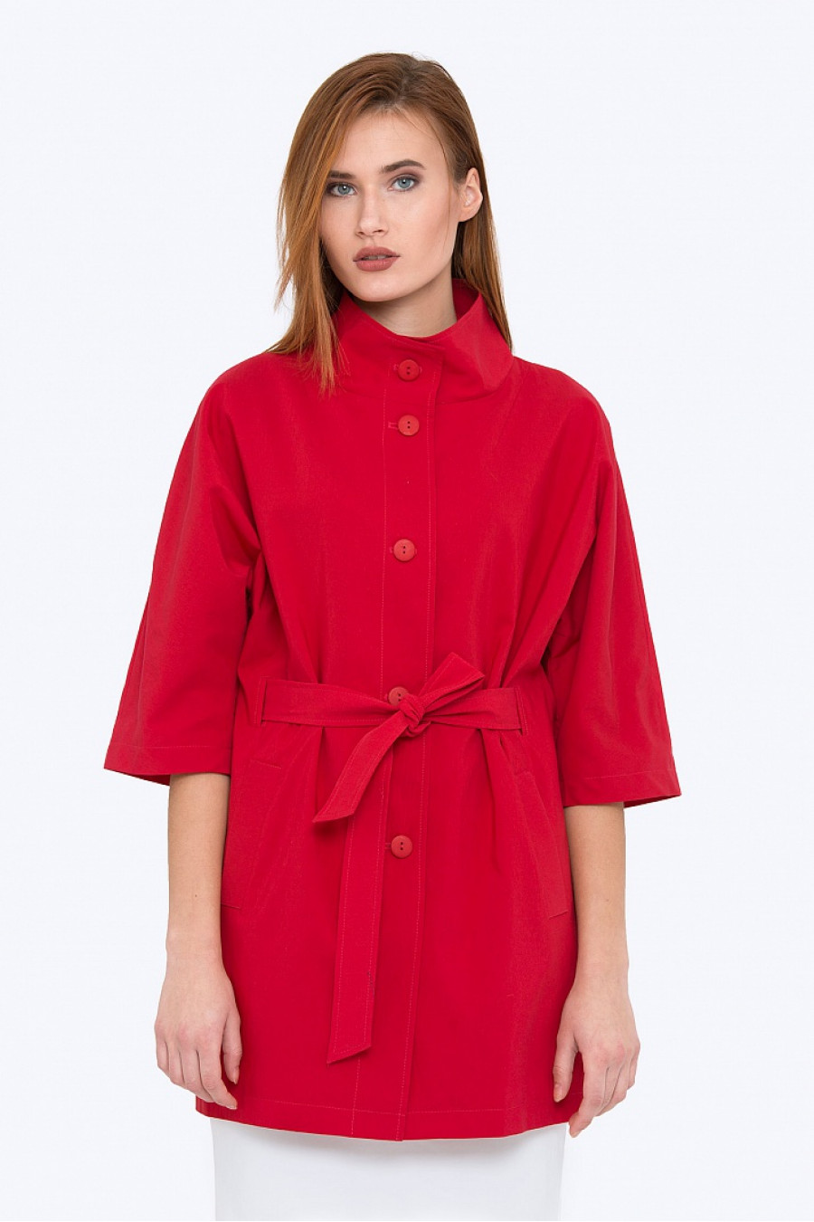 Плащ свободного кроя с цельнокроеным рукавом. Застежка на пуговицы, есть тканевый пояс на талии. Воротник широкая стойка. Есть подкладка из полиэстера. Стильная модель на каждый день.