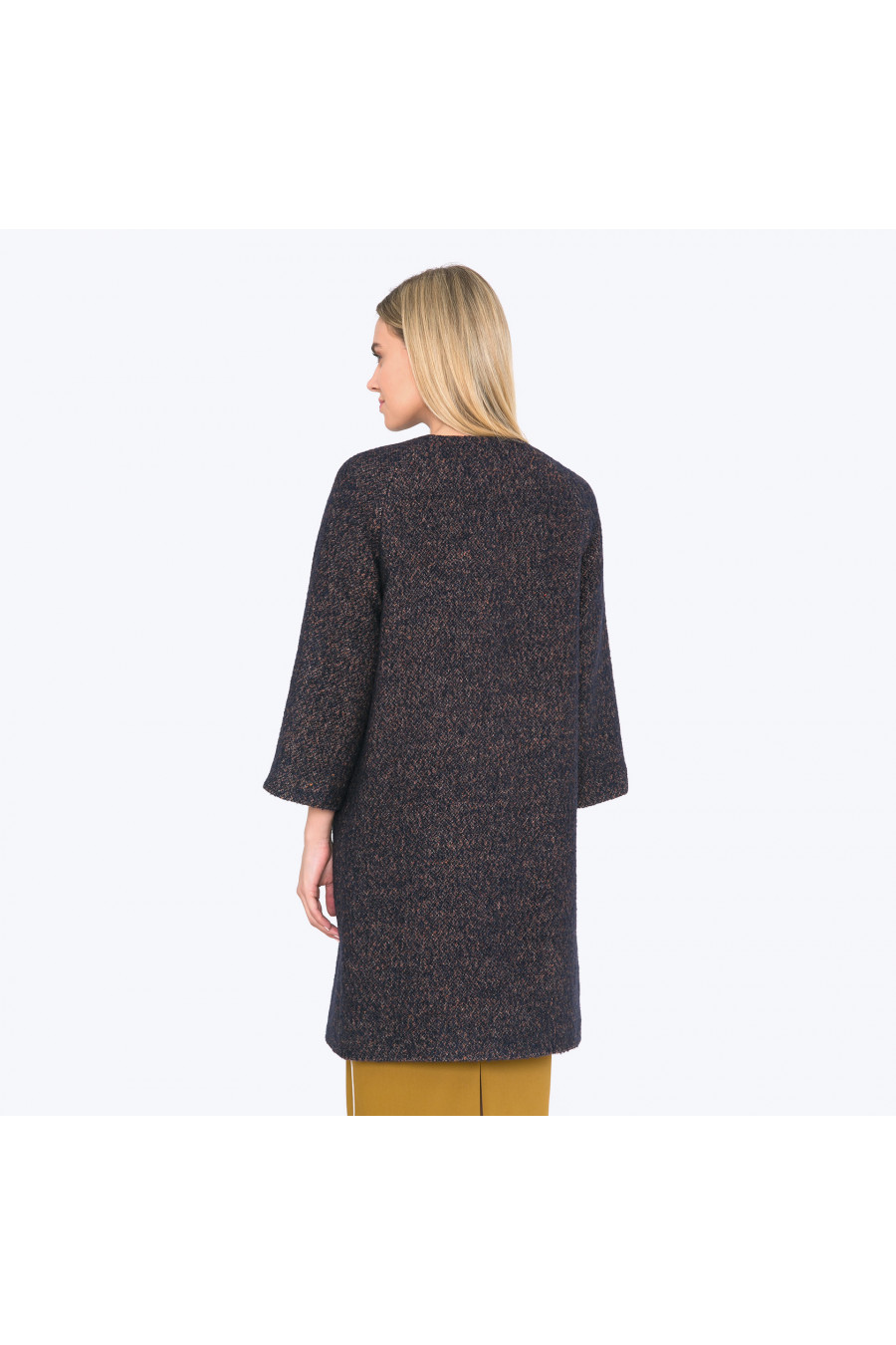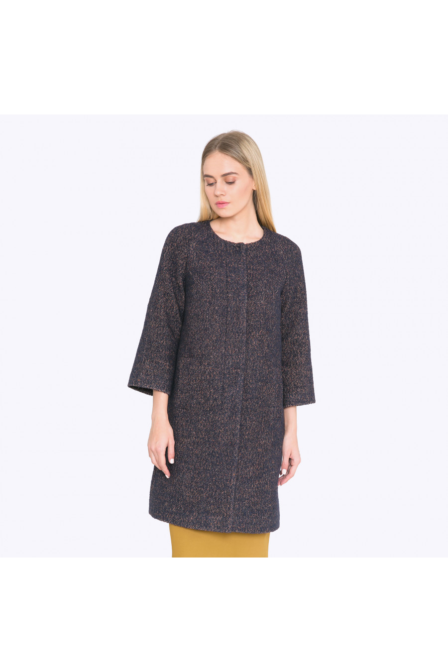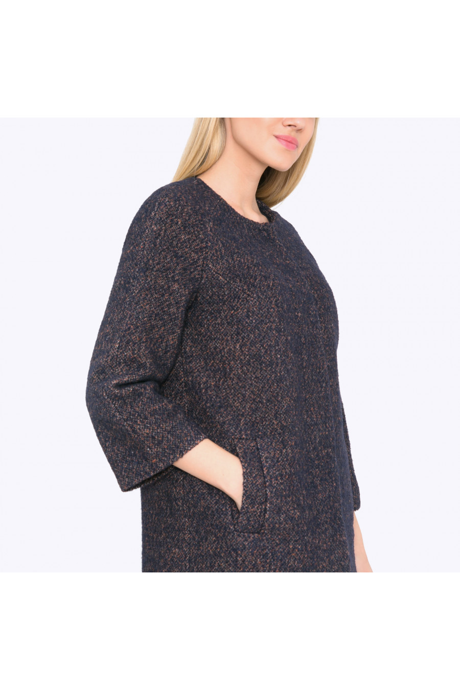 Пальто с рукавами 3/4 и округлым воротником. Ткань ворсистая,на основе шерсти. Есть подкладка. По бокамфункциональные карманы. Стильное пальто прямого крояпрекрасный выбор для прохладной погоды.