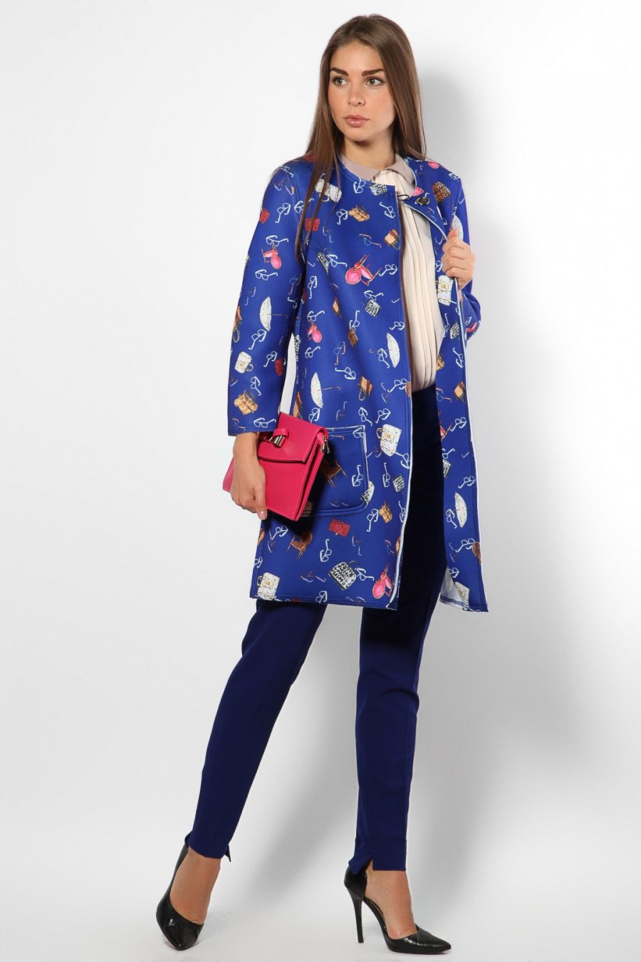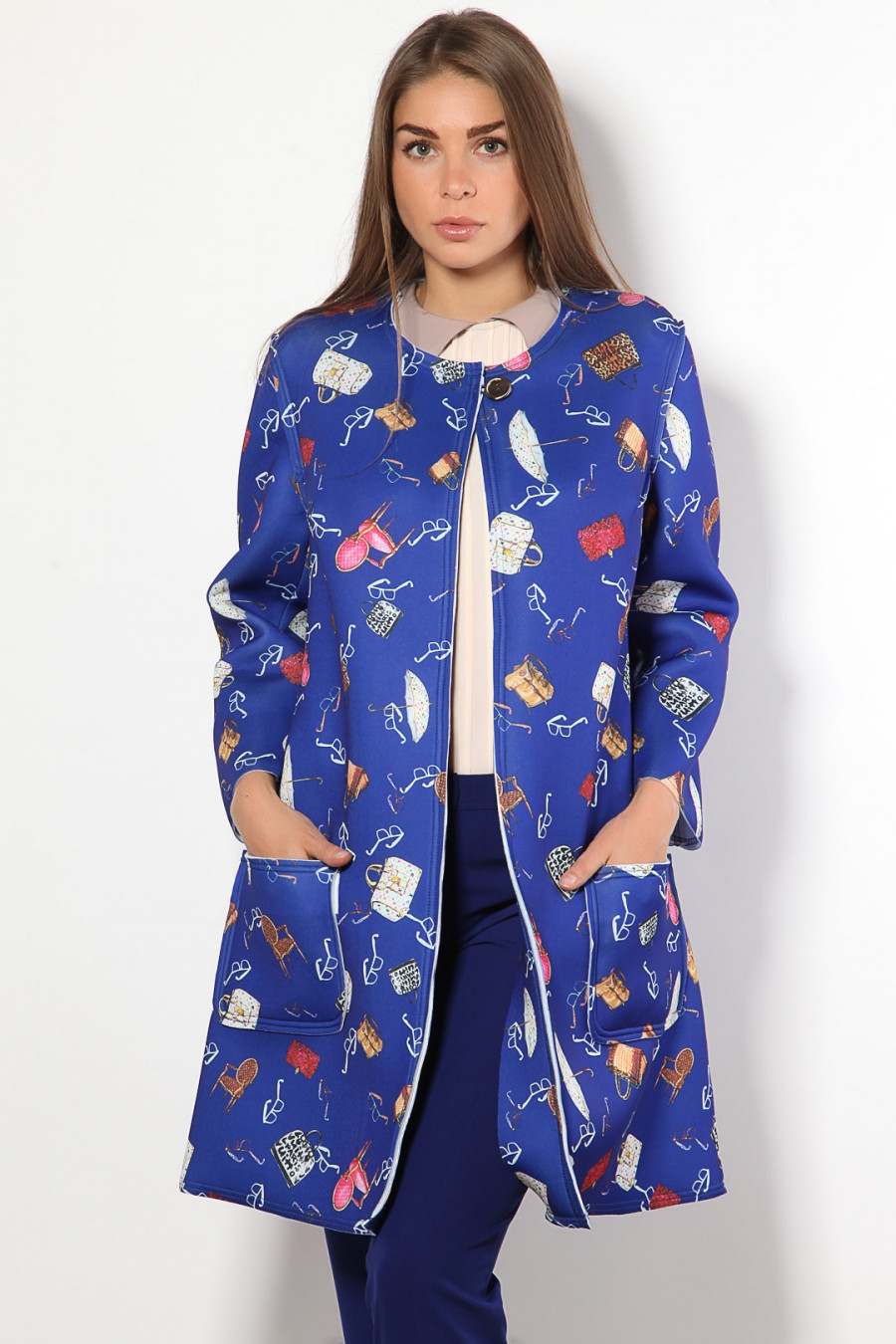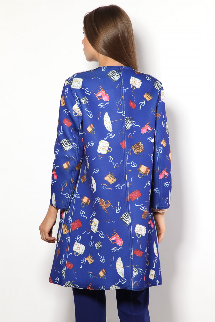 Модель - накидка с овальным вырезом и погувкой сверху. Эксклюзивное летнее пальто с интересным рисунком подчеркнет вашу индивидуальность.