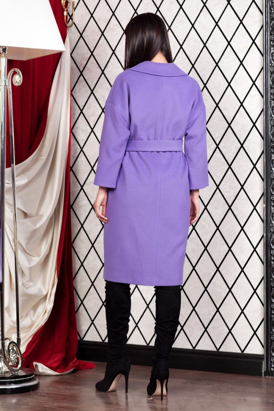 Демисезонное пальто на подкладке прямое длиной ниже колена с рукавом "летучая мышь" 3/4. В боковых швах карманы. Впереди потайная застежка на пуговицы и кнопку. На талии завязывается пояс.