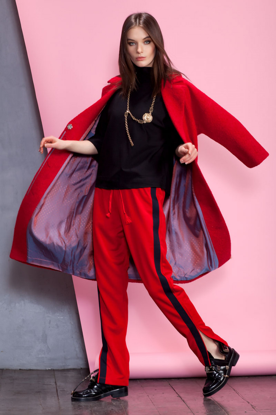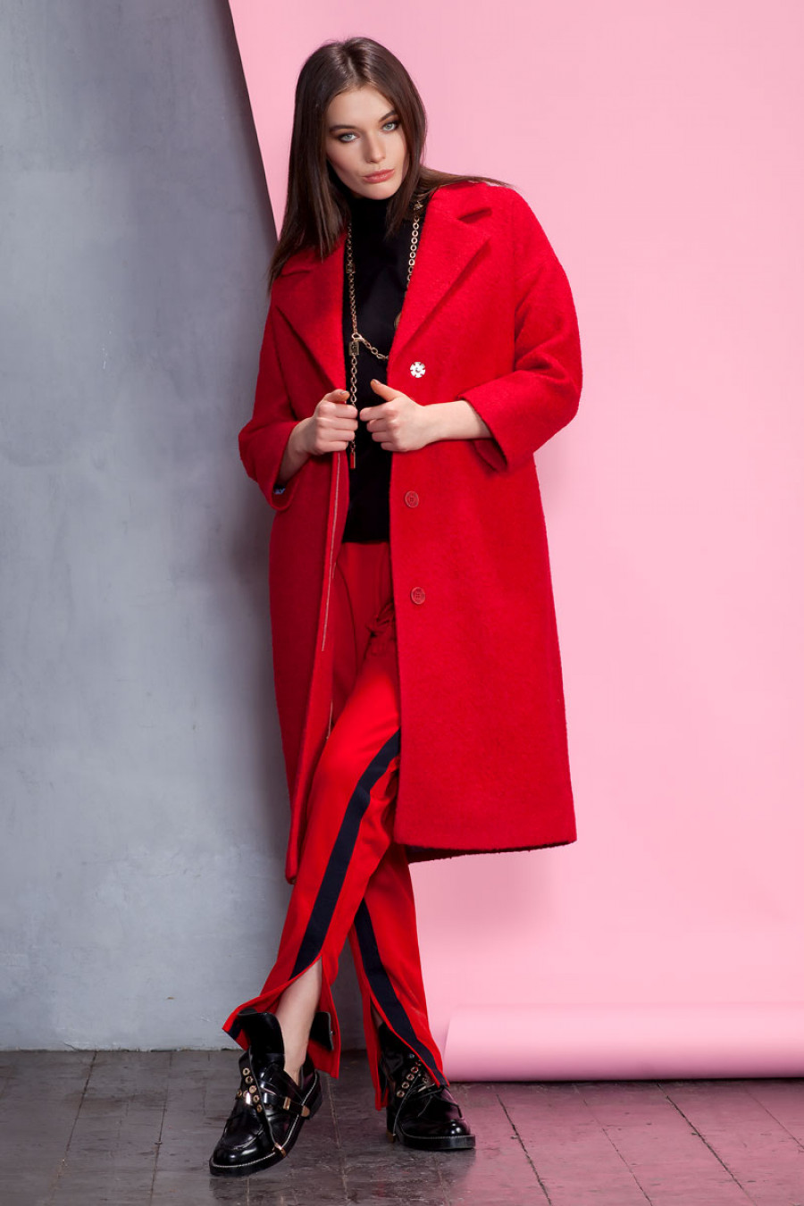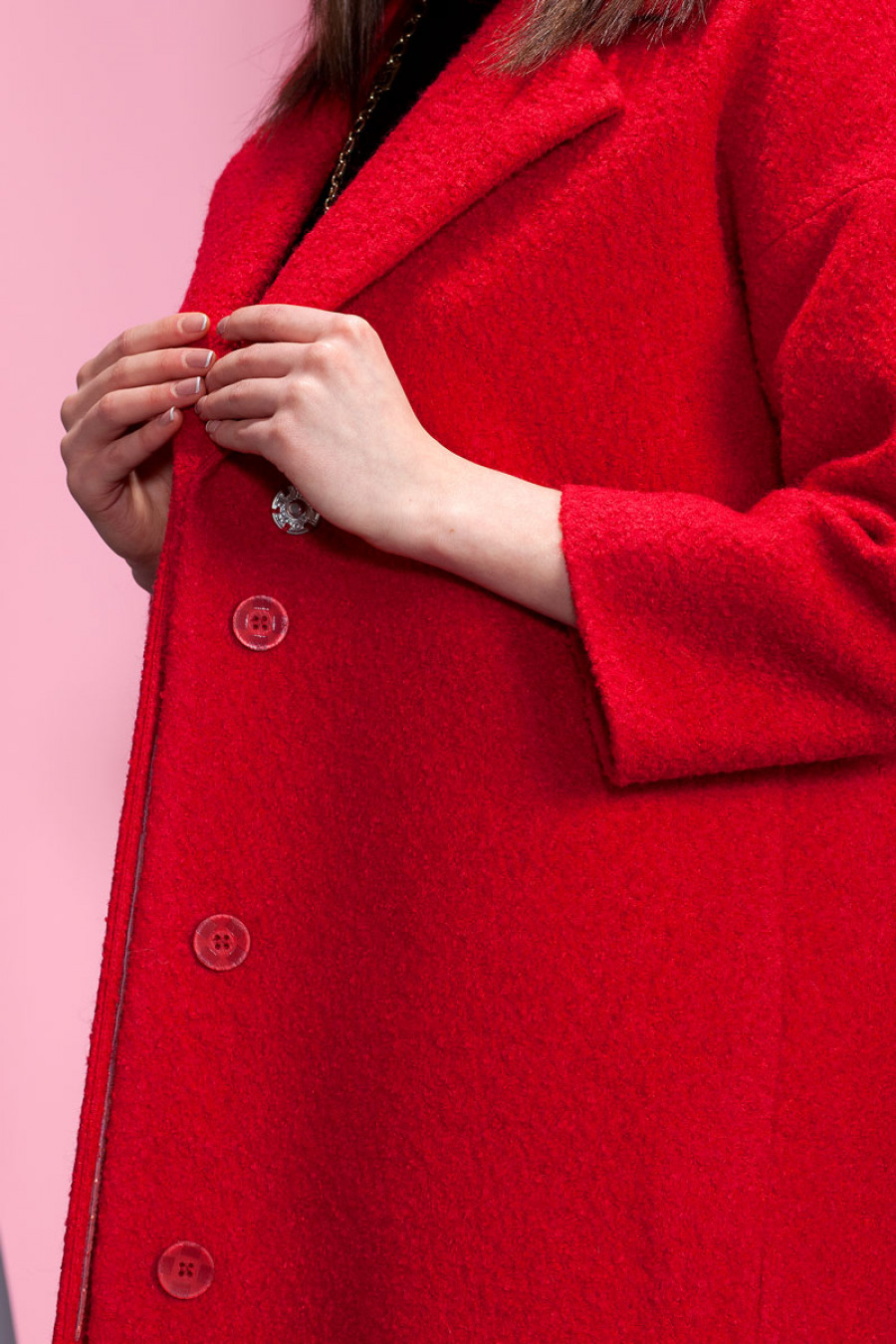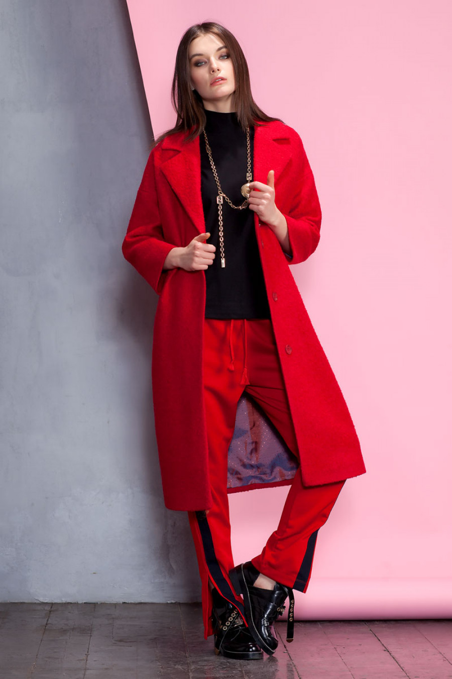 Демисезонное пальто на подкладке прямое длиной ниже колена с рукавом "летучая мышь" 3/4. В боковых швах карманы. Впереди потайная застежка на кнопку. На талии завязывается пояс.