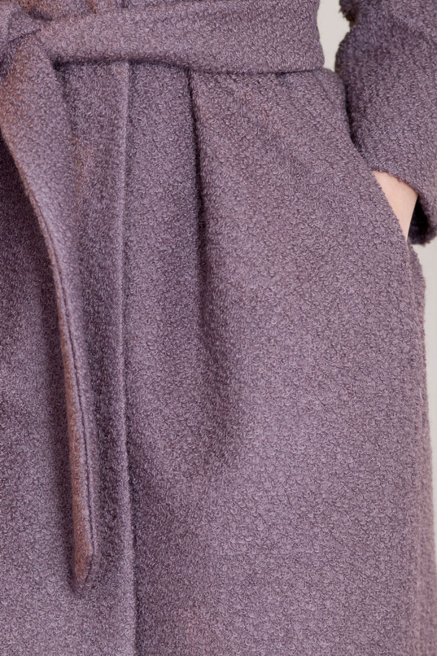 Демисезонное пальто на подкладке прямое длиной ниже колена с рукавом "летучая мышь" 3/4. В боковых швах карманы. Впереди потайная застежка на кнопку. На талии завязывается пояс.