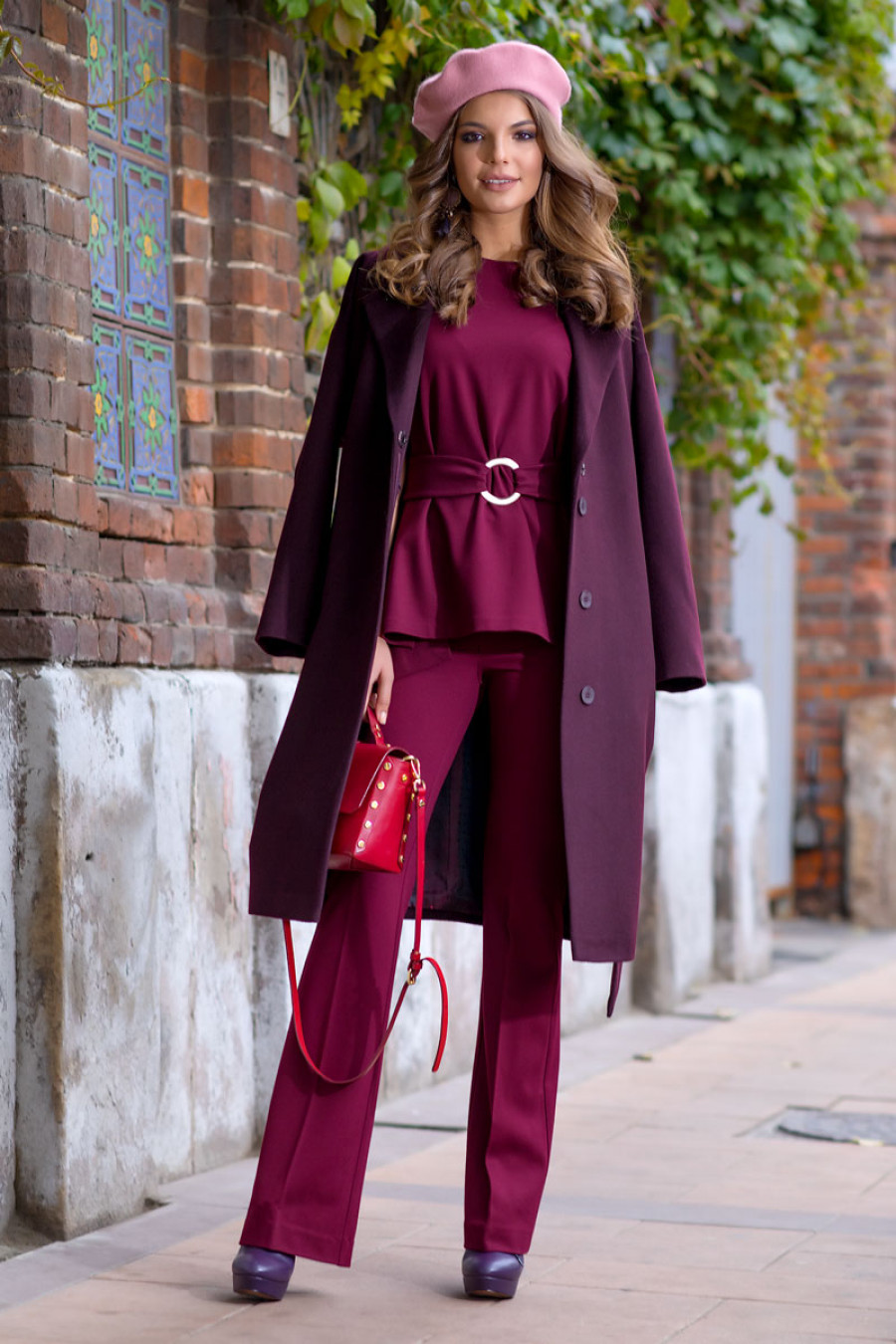 Облегченное демисезонное пальто на подкладке прямое длиной ниже колена с длинным рукавом "летучая мышь". В боковых швах выполнены карманы. Впереди потайная застежка на пуговицы и кнопку. На талии завязывается пояс.
