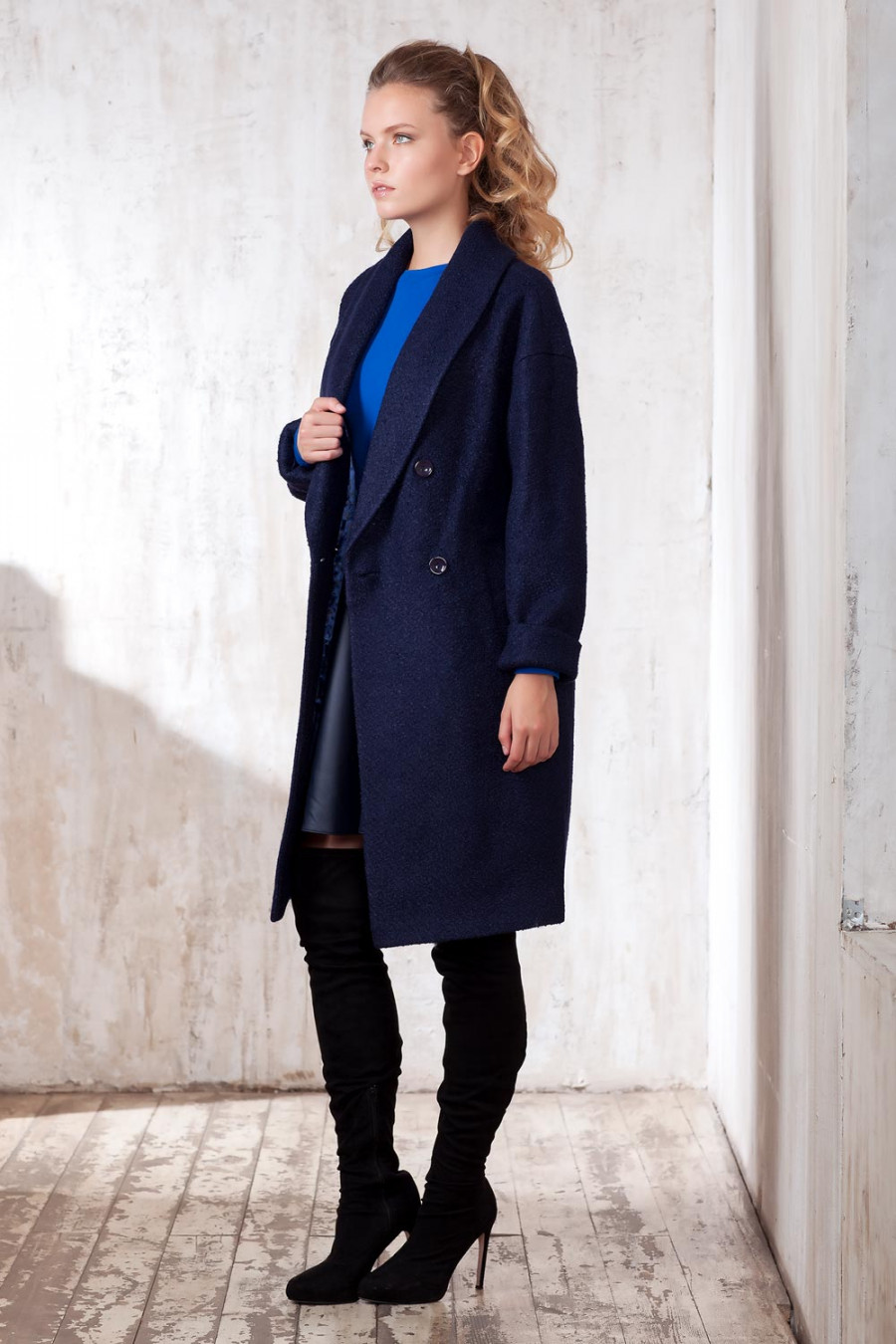 Демисезонное пальто из ткани "букле" на подкладке. Модель прямого силуэта с длинным рукавом и воротником - шаль. Впереди прорезные карманы с листочками. Застежка двубортная на пуговицы. Пальто – это та составляющая женской одежды, которая идеально подчеркивает привлекательность, нежность и красоту.