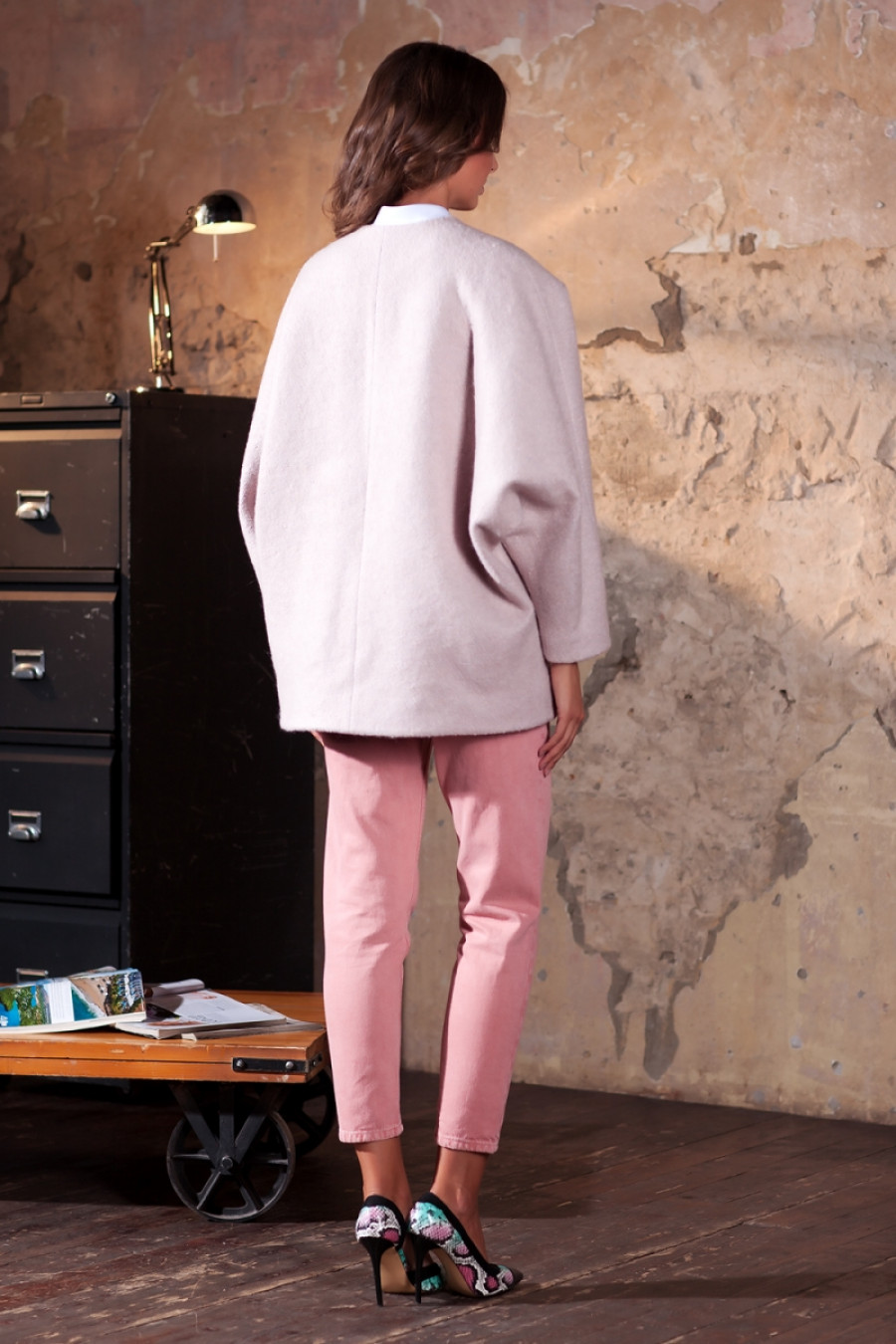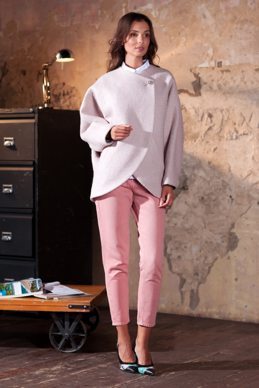 Стильное и эффектное демисезонное пальто на подкладке. Модель объемного кроя over size укороченного типа с длинным цельнокроенным рукавом "летучая мышь". На полочках прорезные карманы. Закругленная форма борта фиксируется декоративной пуговицей. Изделие выполнено из качественной ткани "букле". Женственная модель подчеркнет утонченный вкус своей хозяйки.