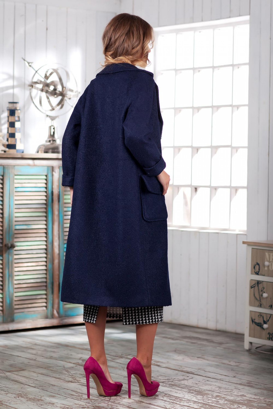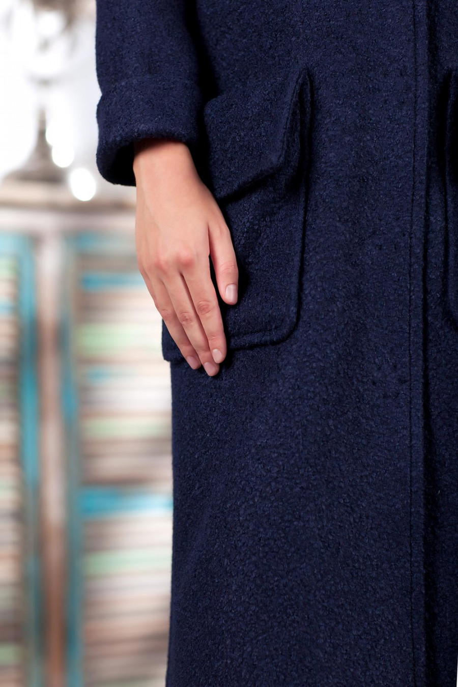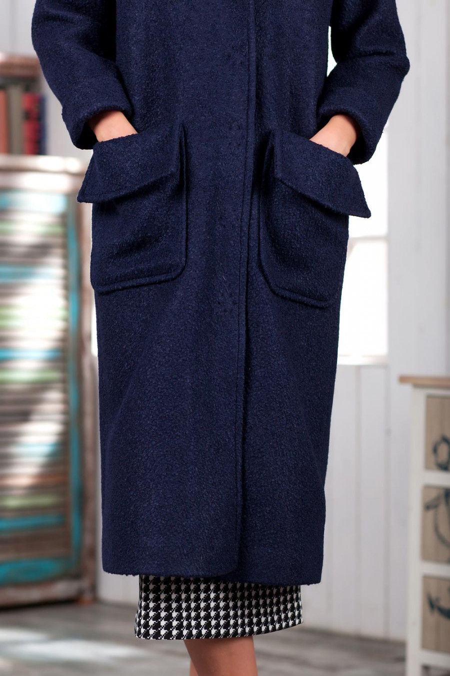 Элегантное демисезонное пальто на подкладке. Модель прямого кроя длиной ниже колена с рукавом 7/8. Горловина оформлена отложным воротником с широкими лацканами. На полочке выполнены накладные карманы с отворотами, имитирующими клапаны. Впереди потайная за...