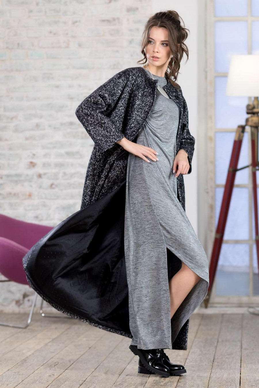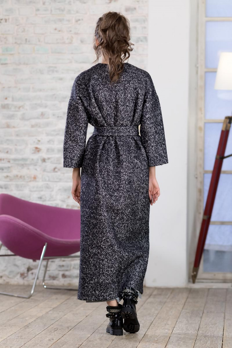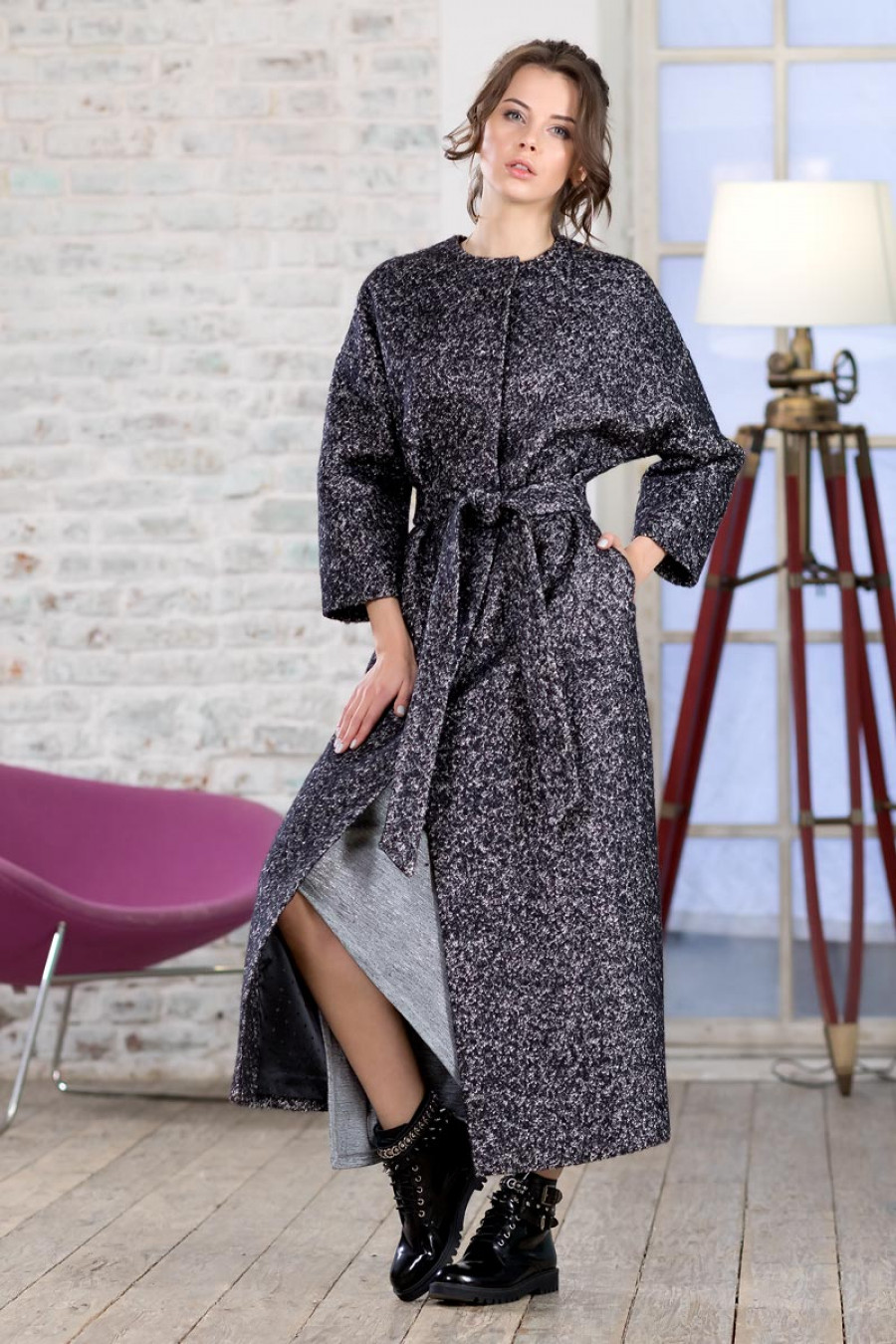 Элегантное демисезонное длинное пальто из букле меланжевой расцветки. Отсутствие воротника, широкий рукав 3/4, скрытая застежка, карманы в боковых швах подчеркивают лаконичность кроя. Изделие выполнено на подкладке. Застежка на пуговицы и кнопку.