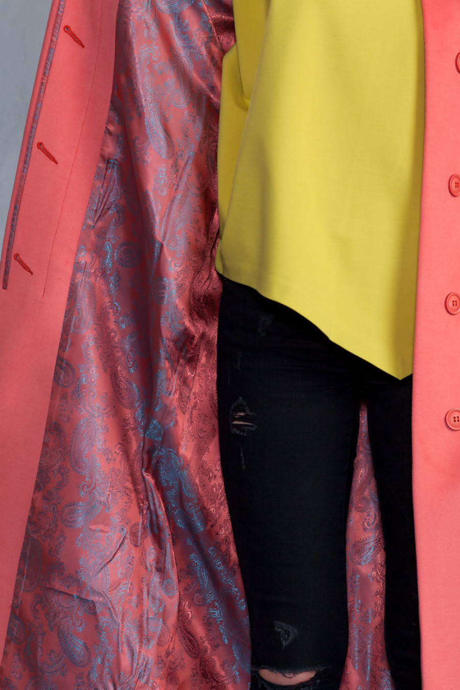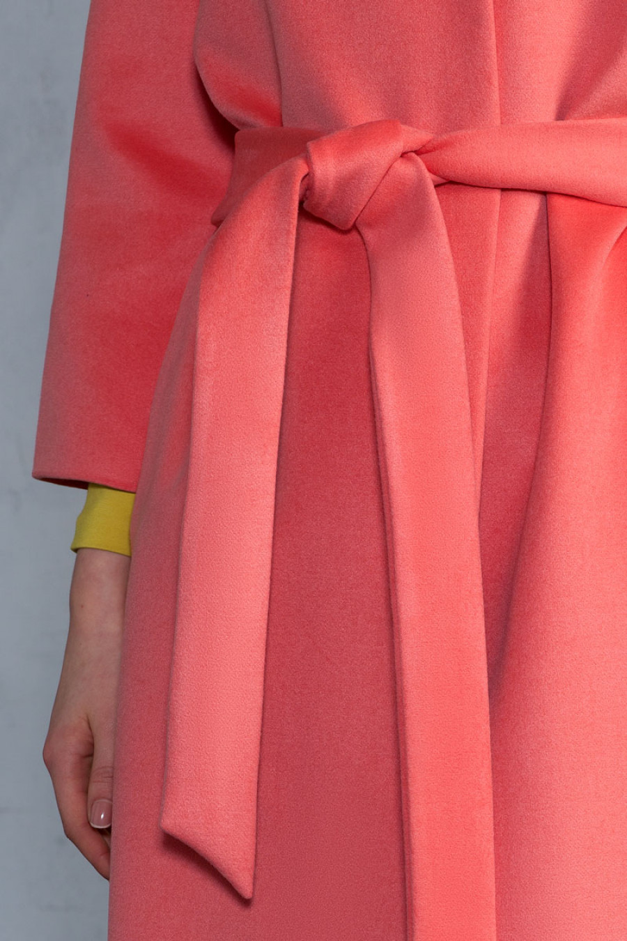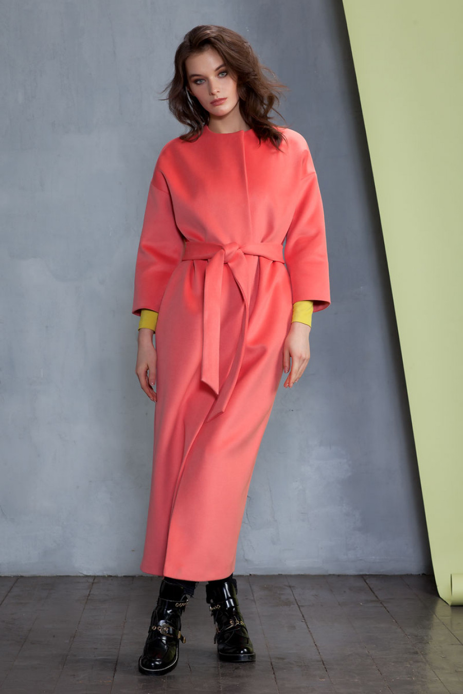 Элегантное демисезонное однотонное длинное пальто. Отсутствие воротника, широкий рукав 3/4, скрытая застежка, карманы в боковых швах подчеркивают лаконичность кроя. Изделие выполнено на подкладке. Застежка на пуговицы и кнопку.