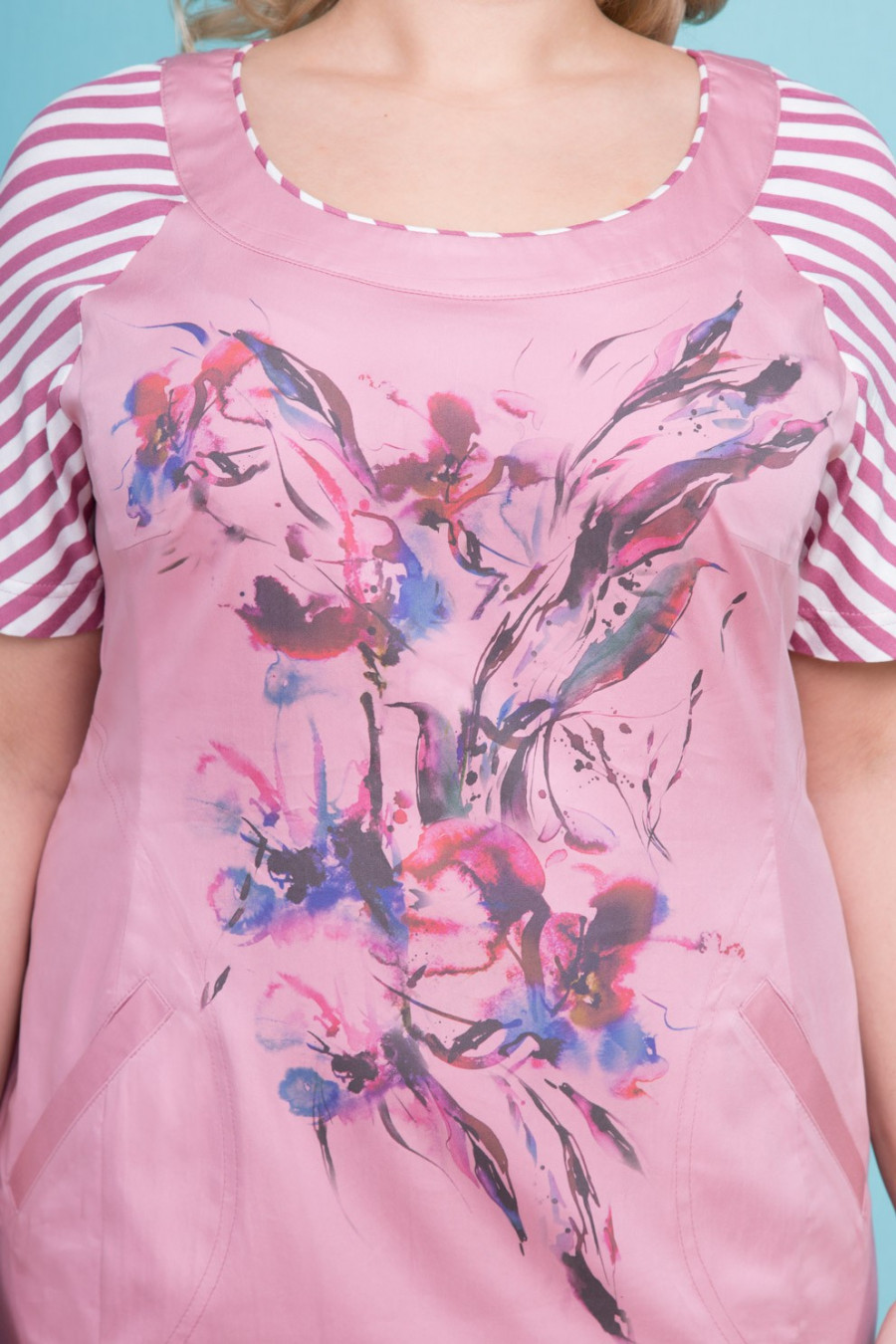 Платье женское, ArtRibbon, полуприлегающего силуэта из платьево - костюмной ткани с вискозными рукавами. Перед с нагрудными вытачками, рельефными швами, прорезными карманами с листочкой, в правом рельефе обработана складка по низу. Спинка с рельефными и средним швами, в верхней части среднего шва оработана застежка на потайную тесьму "молния", заканчивается средний шов функциональной шлицей. Рукава реглан, короткие. Горловина обработана обтачками с декоративным кантом.