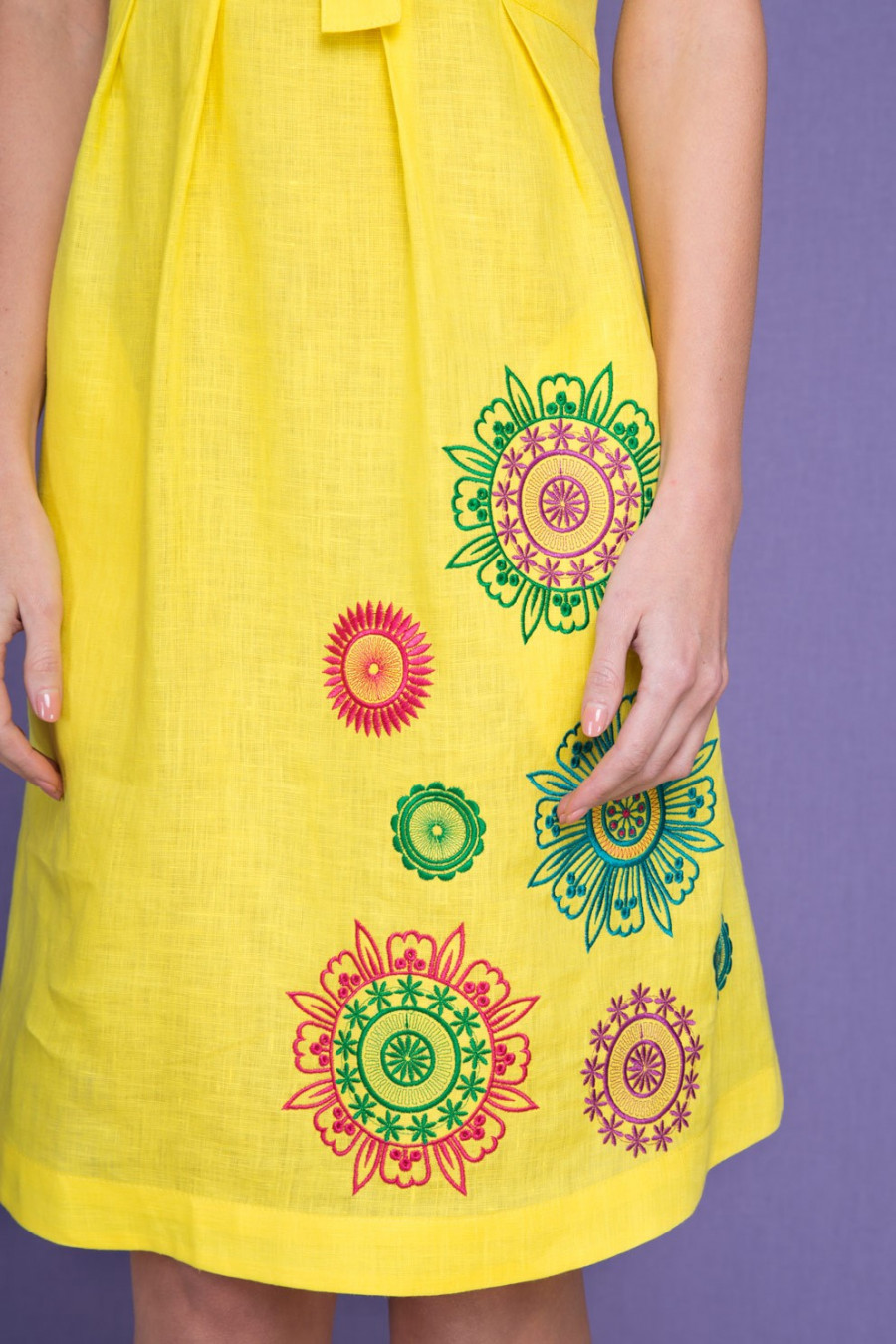 Платье из натурального льна высокого качества позволит телу дышать даже в самую жаркую погоду. Желтый цвет отлично смотрится под загар.