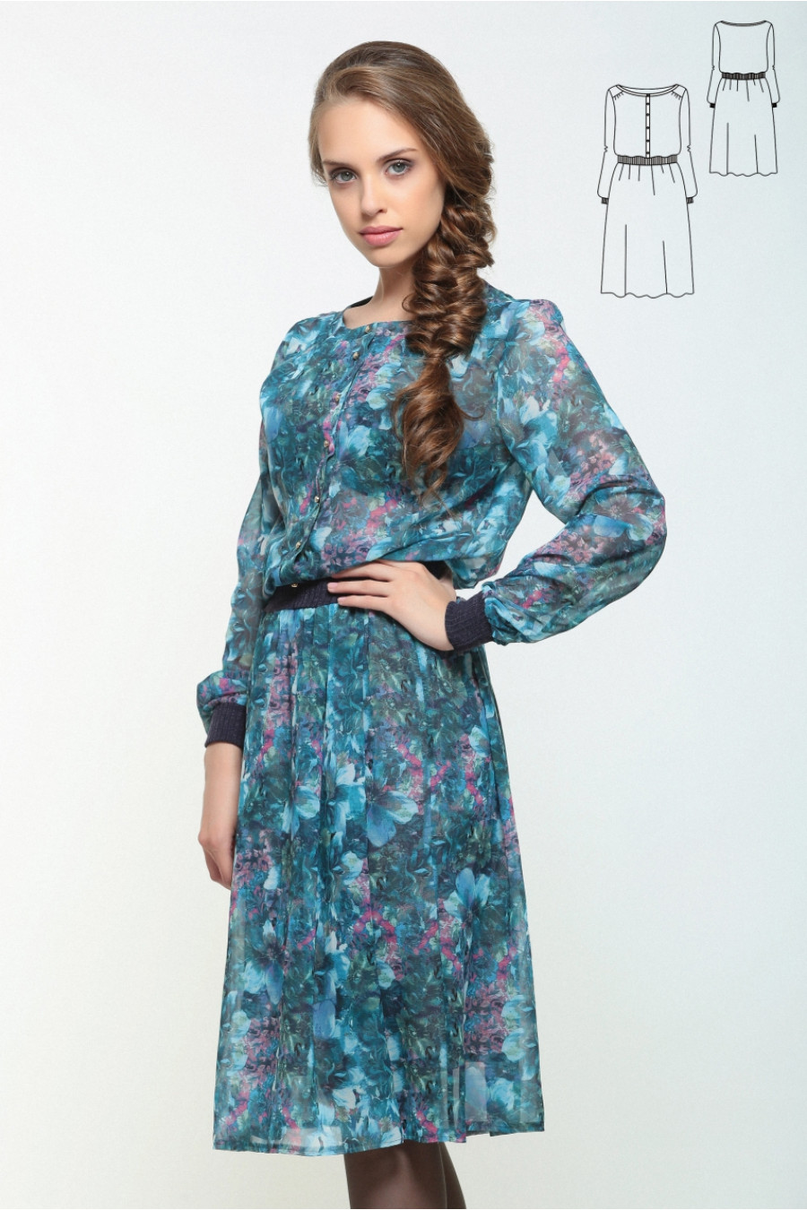 Очень женственное платье с длинным рукавом и вязаным манжетом придаст романтики каждому дню