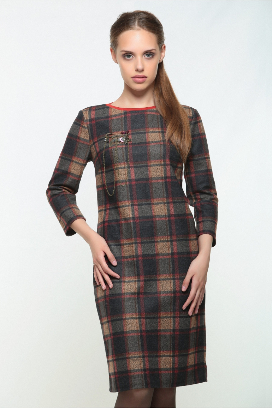 Эффектное платье в крупную клетку.