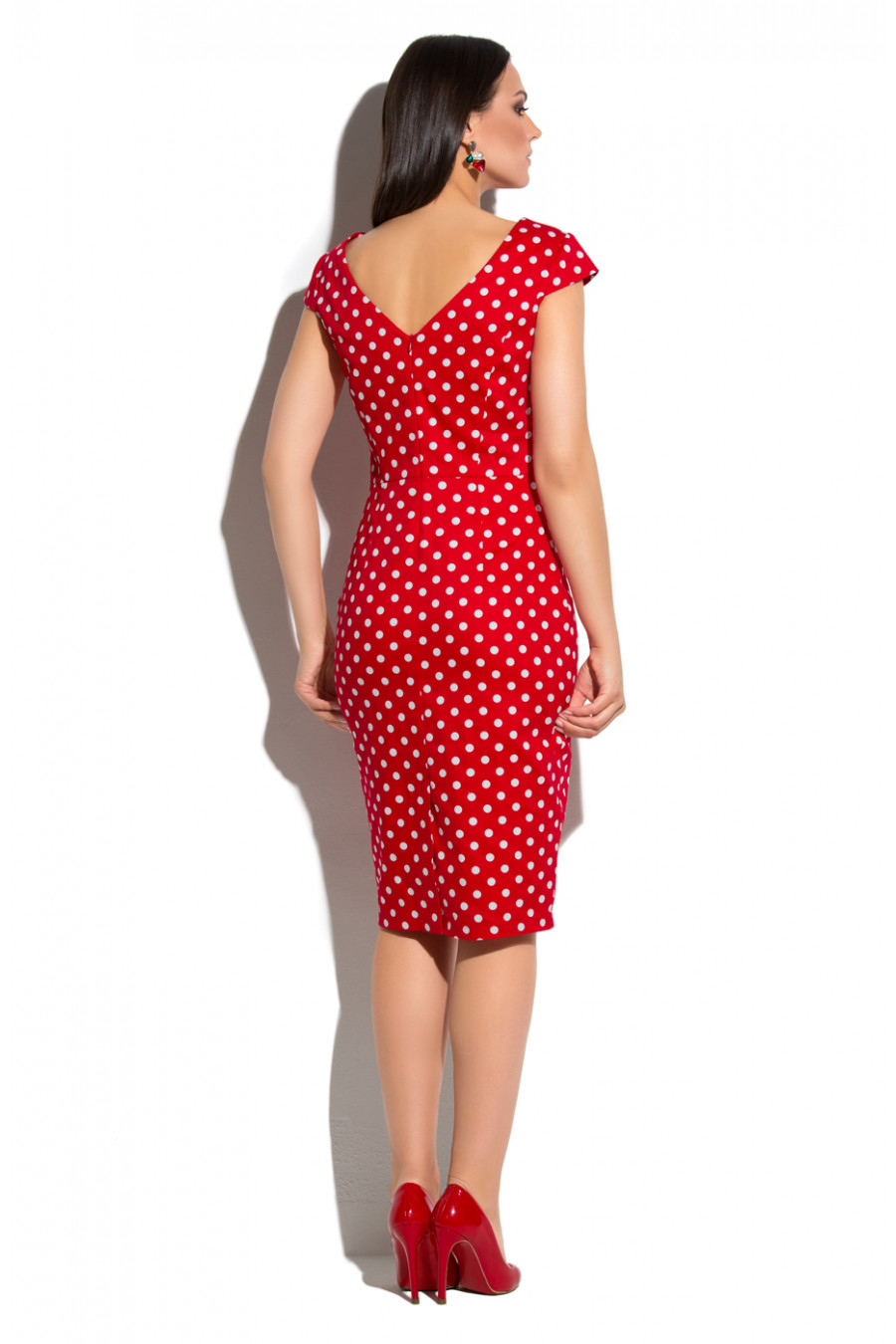 Летнее платье футляр из хлопка с добавлением стрейча. Платье отрезное по линии талии, в лиф платья для лучшей посадки изделия по фигуре введены рельефы. Вырез горловины на полочке – лодочка, на спинке глубокий V- образный. В среднем шве спинки шлица и застежка на потайную молнию.