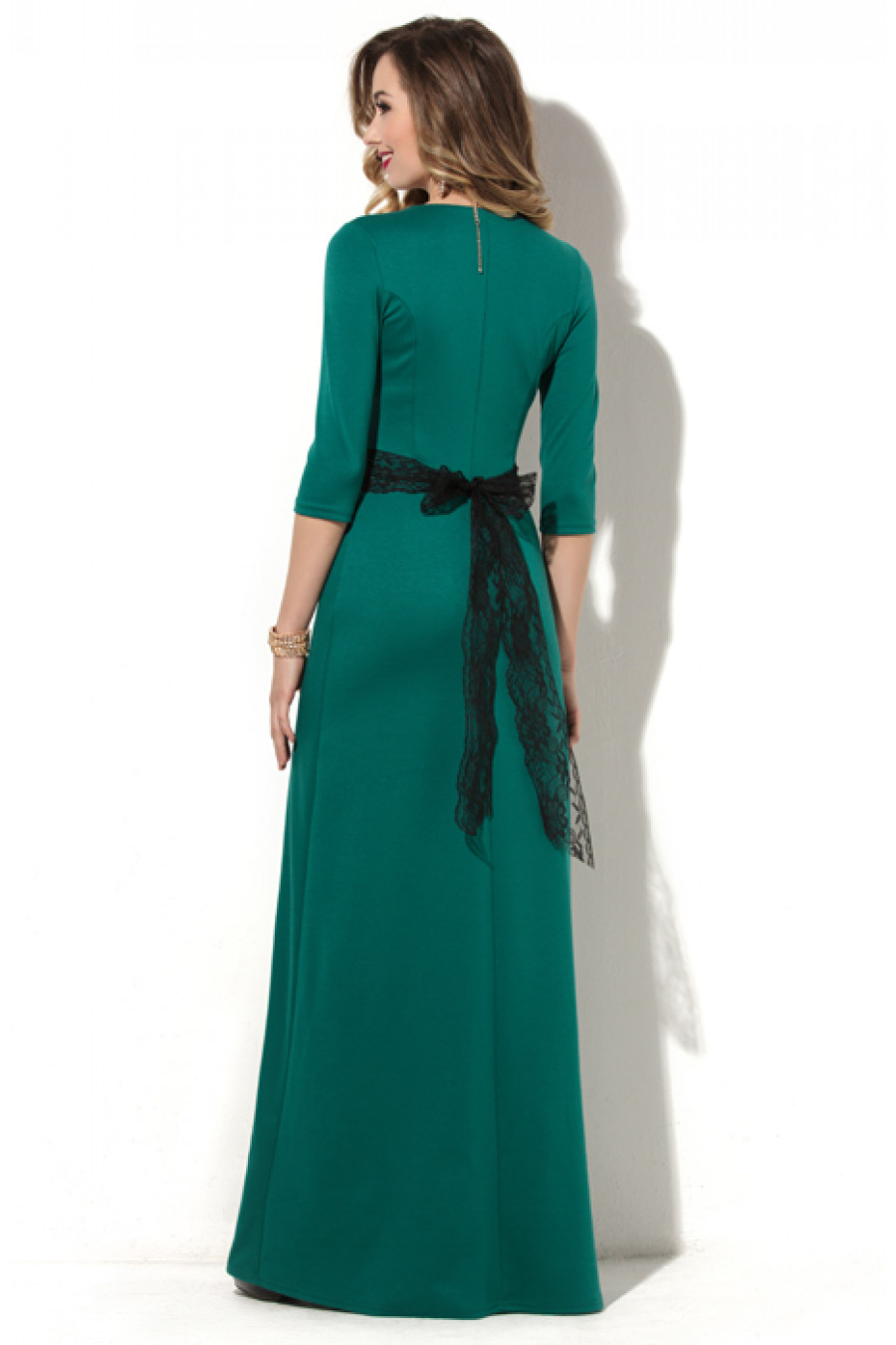 Изысканное платье в пол с отрезной линией талии, из трикотажа джерси. Юбка платья состоит из двух частей однотонных по цвету тканей ,что делает его достаточно практичным. Верхняя юбка имеет пикантный раскрывающийся разрез посередине полочки, из-под которого видна нижняя юбка длинной «мини», что является изюминкой данного платья. Данная модель скрывает все недостатки , но в тоже время смотрится достаточно откровенным и подчеркивает прелести женского образа. Приталенный силуэт достигается за счет рельефов по спинке и полочки платья. Горловина имеет «v»-образный вырез, что особенно актуально в этом сезоне, рукав 34. Дополнит и внесет праздничное настроение образу, кружевной пояс, который можно в любой момент снять и носить платье в атмосфере простых будничных дней. Длина: 147-149 см (зависит от размера). Данное платье это своеобразный «микс» фасонов :это и мини, и макси.