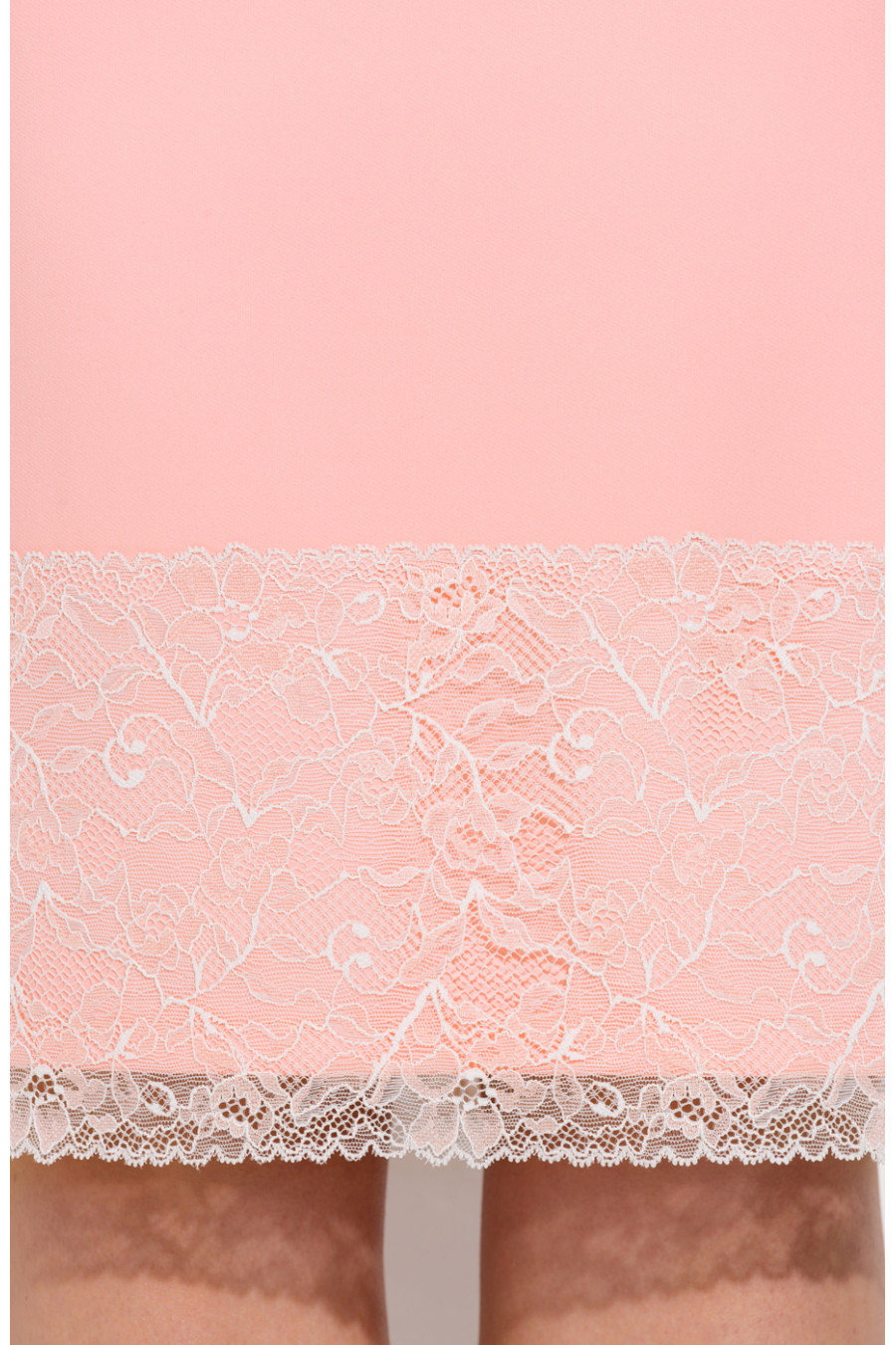 Элегантное платье слегка приталенного силуэта выполнено из плательной ткани с небольшим добавлением эластана. Платье простого кроя, на полочке нагрудные вытачки. Вырез горловины круглый, не глубокий. Рукав втачной, выше локтя. В среднем шве спинке застежка на потайную молнию и шлица. Низ платья декорирован нежным двухцветным кружевом. Свободный покрой платья подходит обладательницам всех типов фигур, а последние несколько сезонов он еще является и модным трендом.