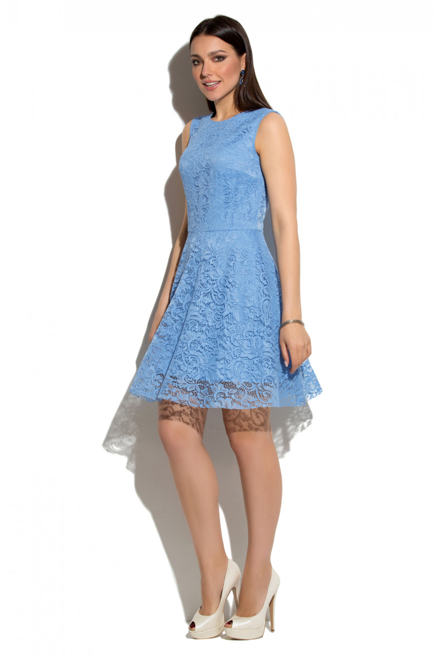 Коктейльное платье из кружевного полотна на подкладке. Платье отрезное по линии талии. На полочке для хорошей посадки введены нагрудные вытачки, в среднем шве спинки – застежка на потайную молнию. Вырез горловины круглый не глубокий. Юбка имеет расклешение. Подкладка платья выполнена из тонкой натуральной ткани в тон кружева.