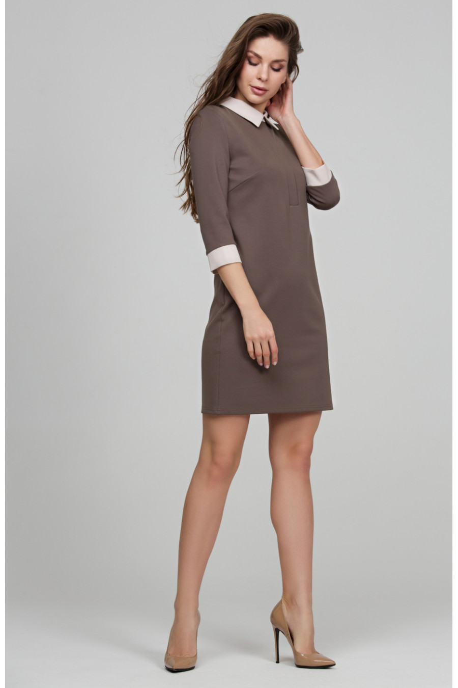 Коктейльное платье выполнено из плотного трикотажа «алези». На спинке средний шов и застежка на потайную молнию. На полочке нагрудные вытачки и декоративная планка. Рукав втачной с манжетом. Горловина обработана отложным воротничком.