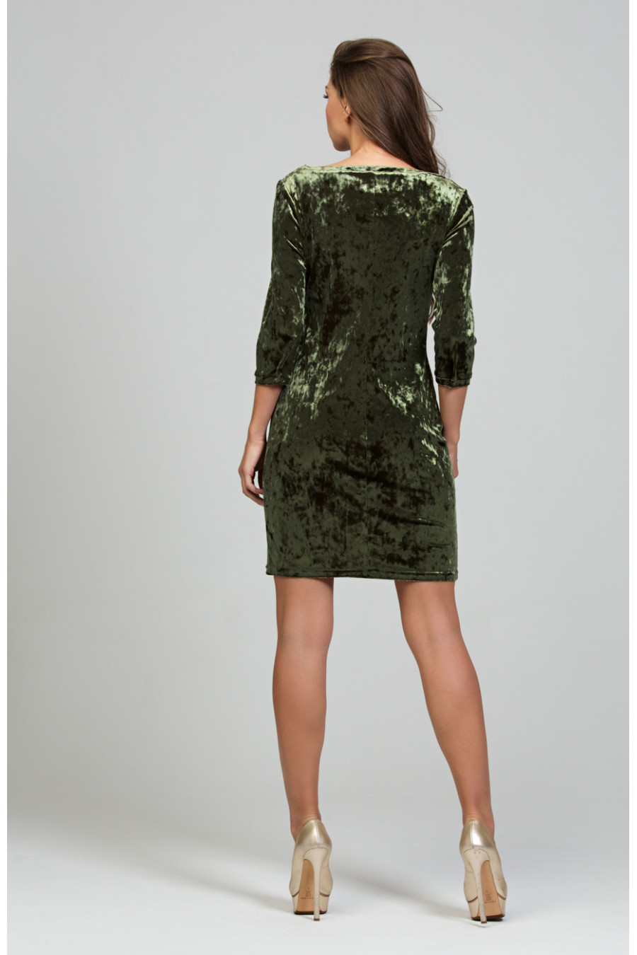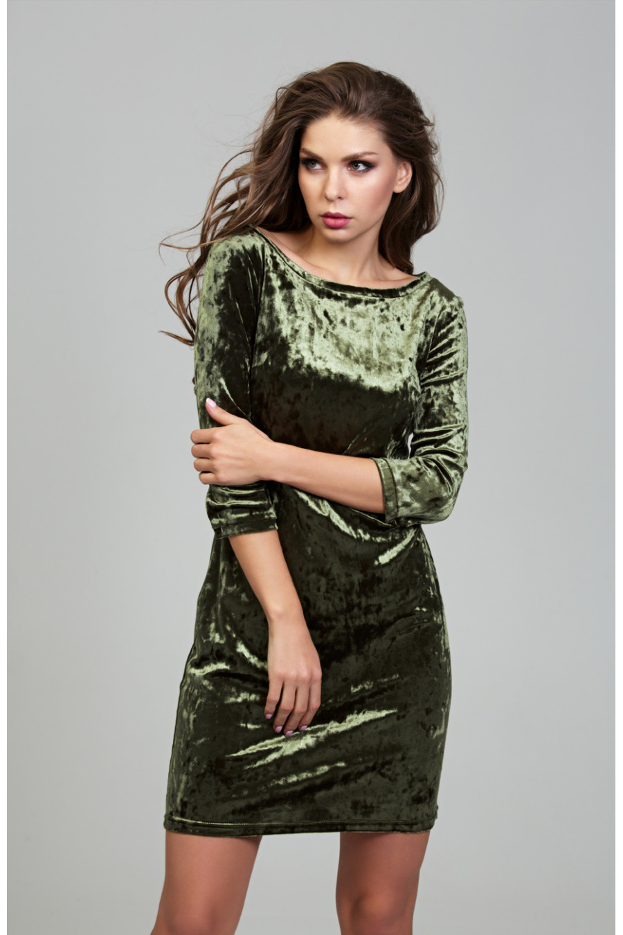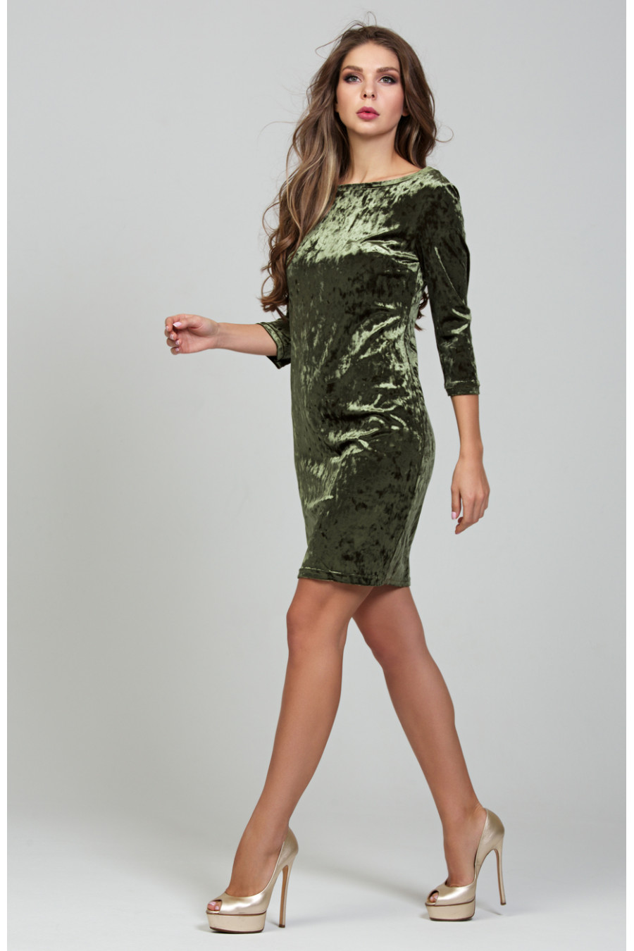 Коктейльное платье из великолепного бархата. На полочке нагрудные вытачки, что обеспечивает отличную посадку платья. Вырез горловины не глубокий – «лодочка». Рукав длинной 3/4, втачной. Горловина и низ платья обработаны декоративными деталями.