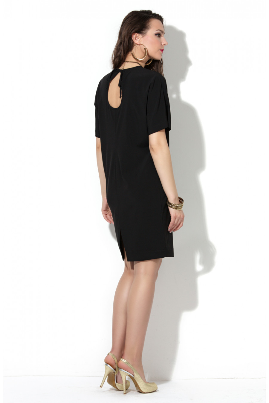 Летнее платье из тонкой плательной ткани Свободный, слегка зауженный к низу силуэт платья достигнут благодаря цельнокроеному рукаву «летучая мышь». Простая и лаконичная модель подойдет обладательницам практически всех типов фигур. Оригинальность платью придает глубокий вырез капля на спинке. В среднем шве спинки высокий разрез. Круглый вырез горловины обработан кантом, переходящим в завязку выреза спинки.