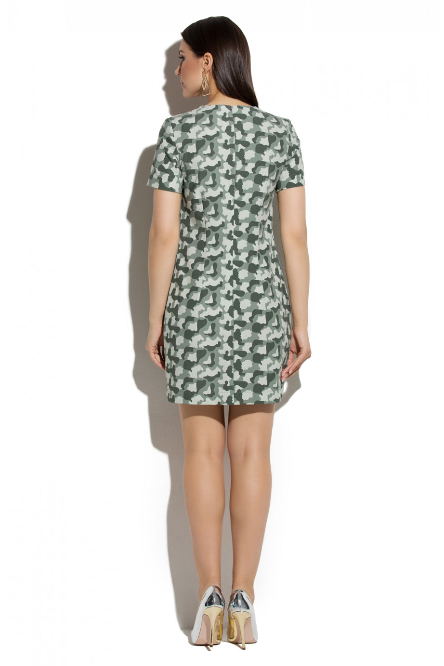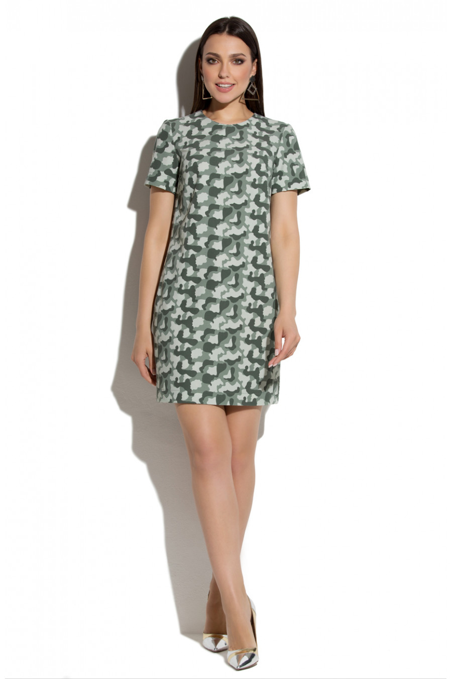 Прямое платье из хлопка с добавлением эластана. Платье простого кроя, на полочке вытачки, на спинке средний шов и талиевые вытачки. Вырез горловины круглый. Рукава короткие втачные. Прямой, свободный силуэт платья подходит обладательницам всех типов фигур, а последние несколько сезонов он еще является и модным трендом.