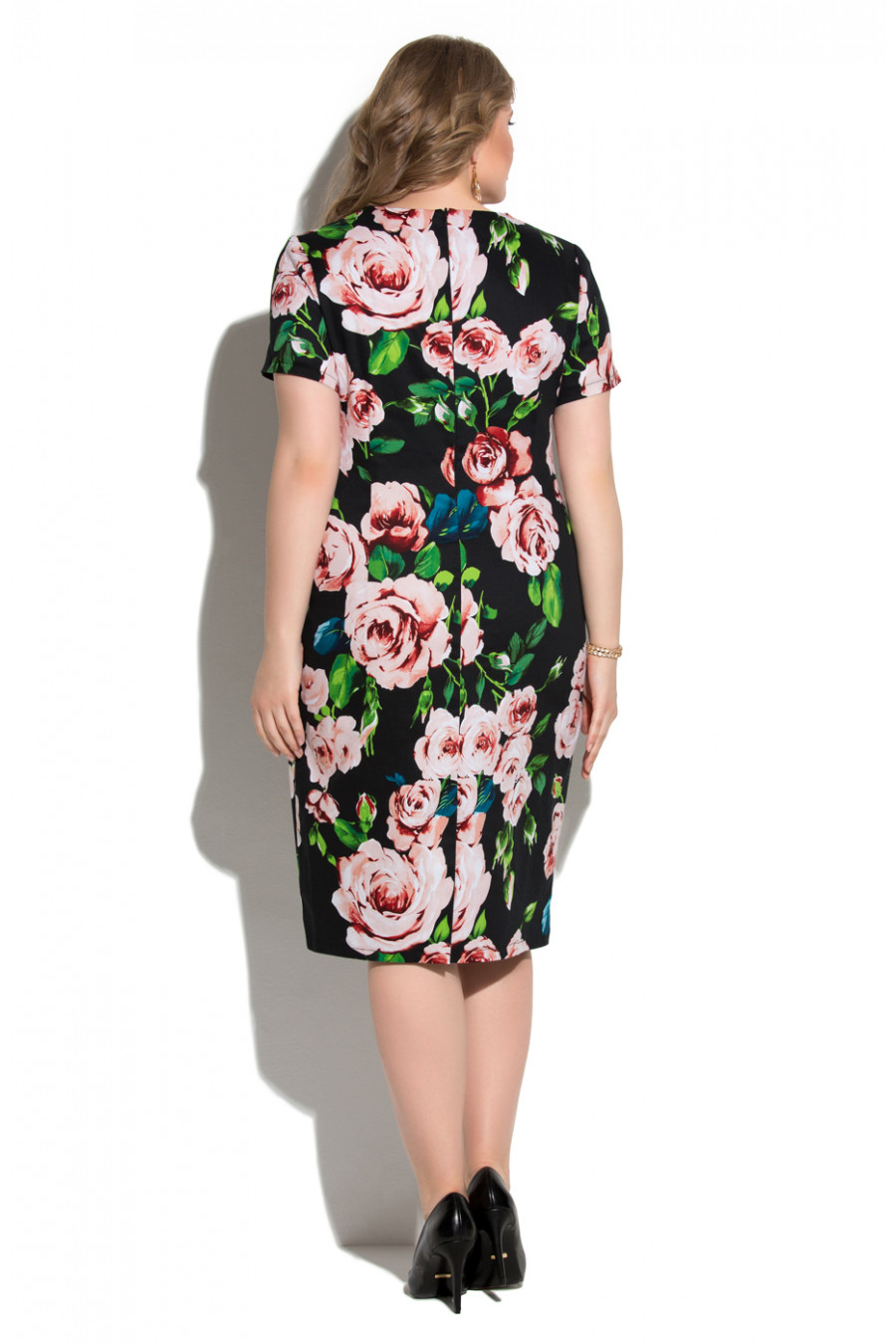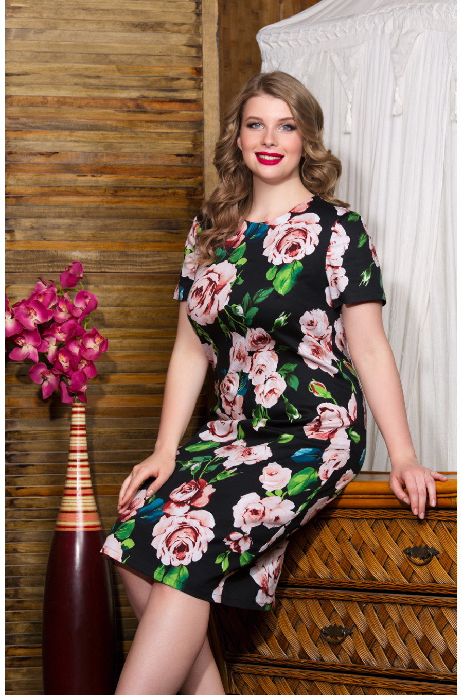 Прямое платье из хлопка с добавлением эластана. Платье простого кроя, на полочке вытачки, на спинке средний шов и талиевые вытачки. Вырез горловины круглый. Рукав короткий втачной. Прямой, свободный силуэт платья подходит обладательницам всех типов фигур, а последние несколько сезонов он еще является и модным трендом.