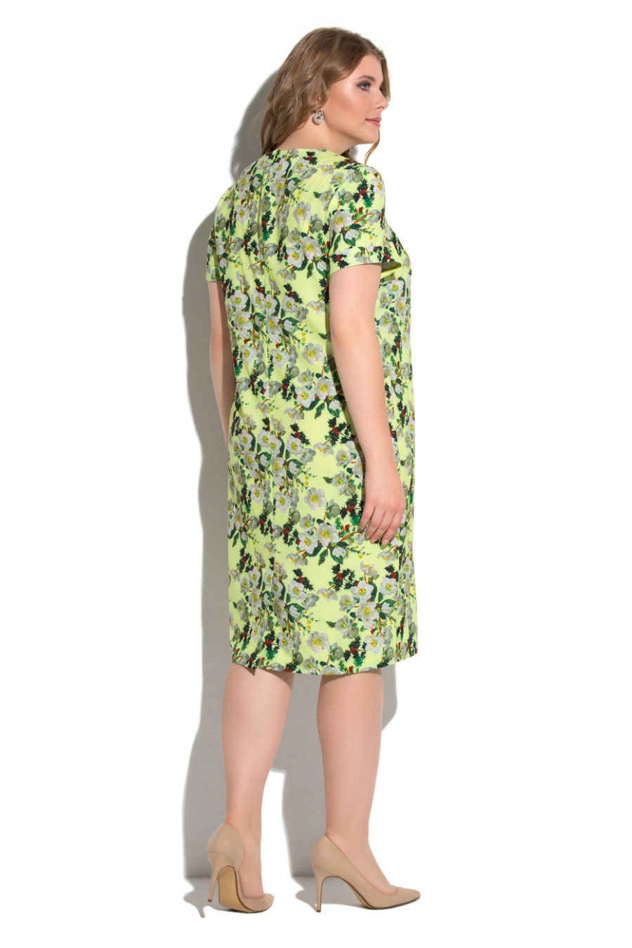 Коктельное платье прямого силуэта из легкой ткани, напоминающей натуральный шелк. Вырез горловины круглый, обработан обтачкой. На спинке средний шов. Рукав втачной с отворотом.