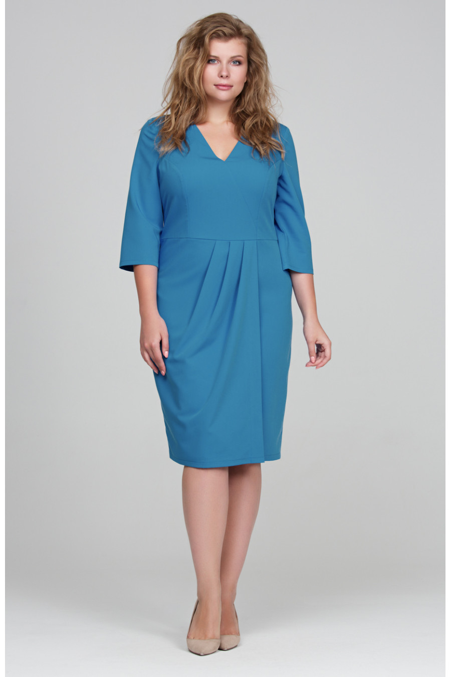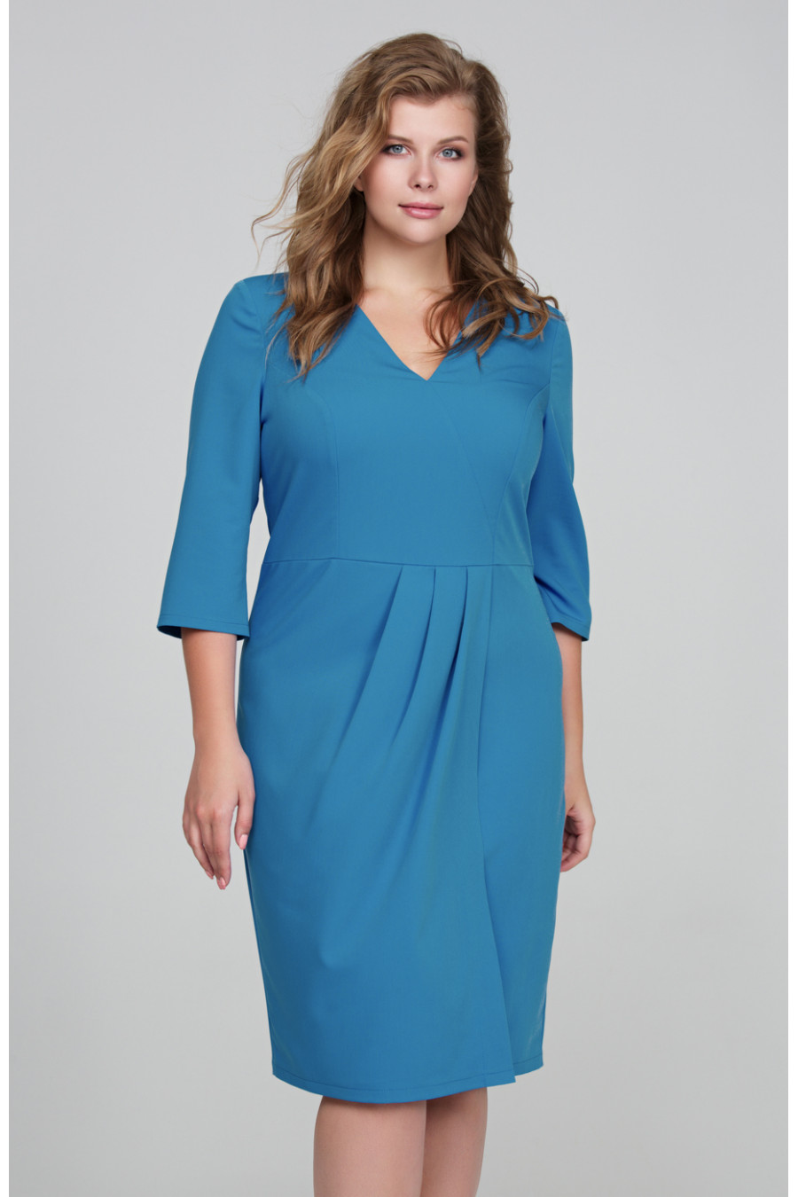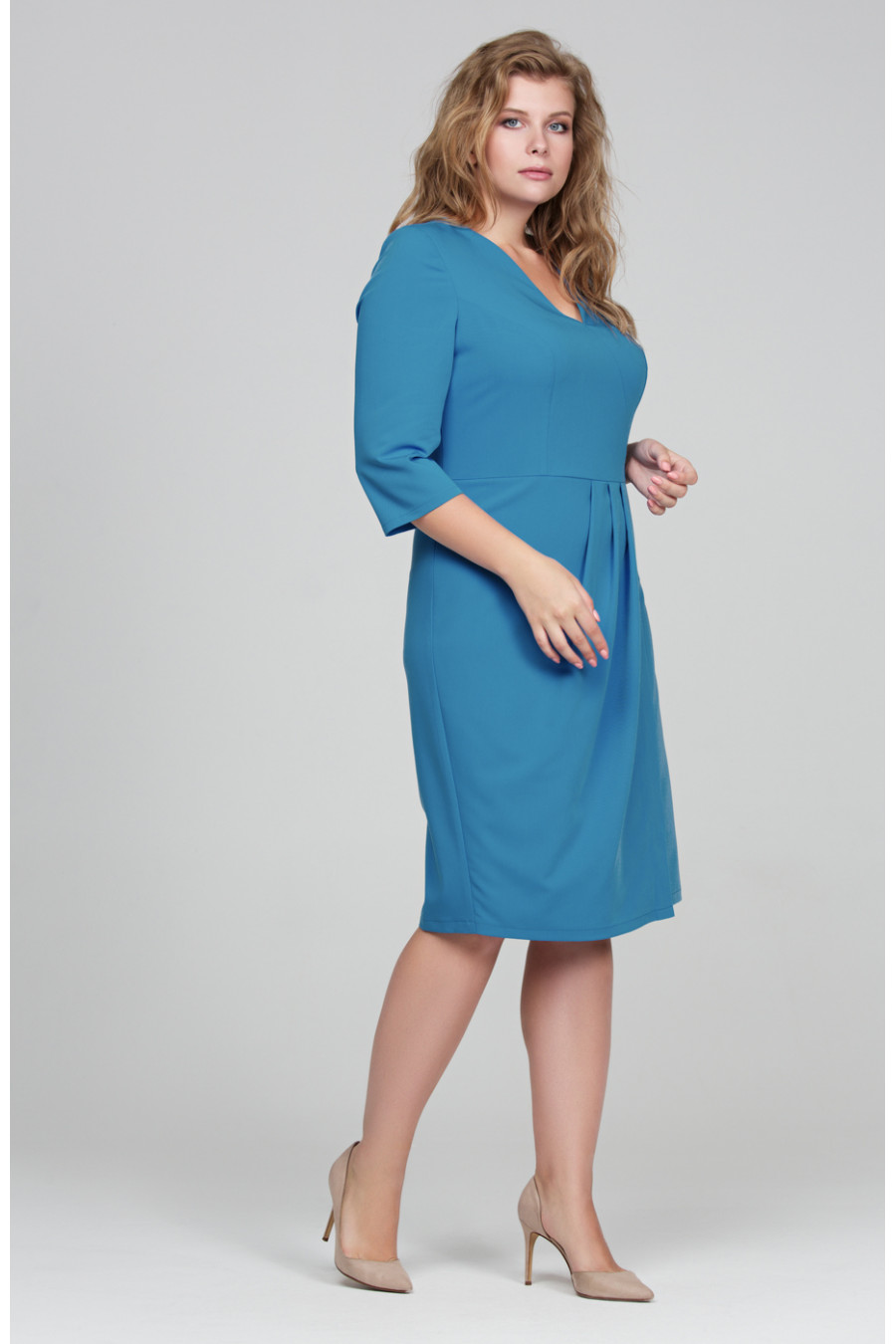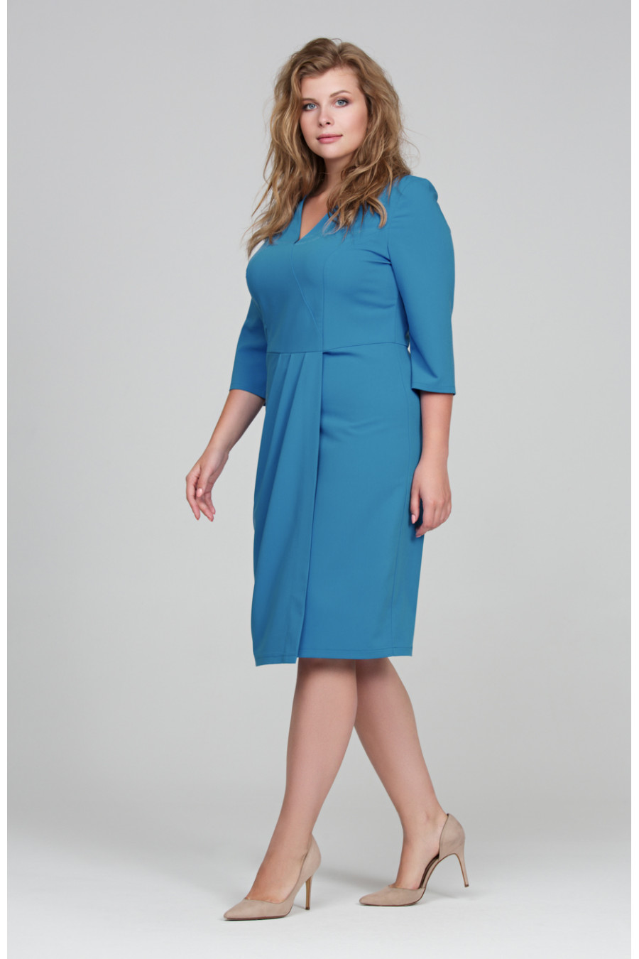 Коктейльное платье прилегающего силуэта из плательной ткани «гальяно». На спинке средний шов и застежка на потайную молнию. Рукав узкий длинной 3/4. На полочке платья создана имитация выреза «назапах», благодаря чему образуется глубокий V-образный вырез декольте. На юбке платья введены декоративные односторонние складки.