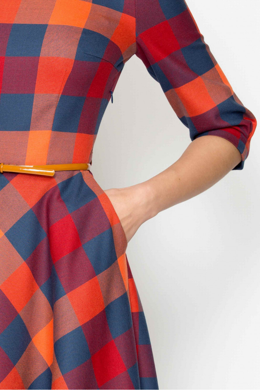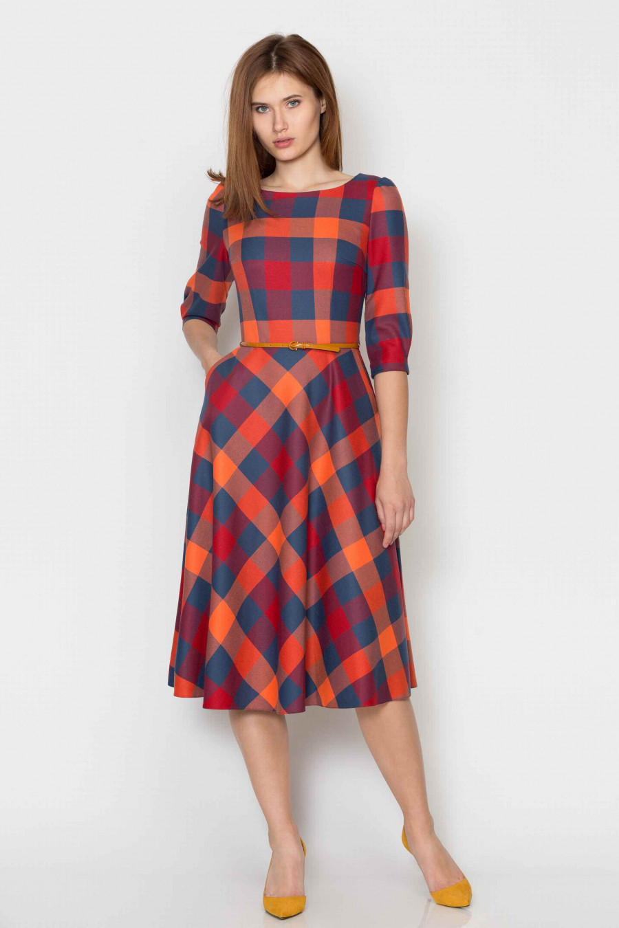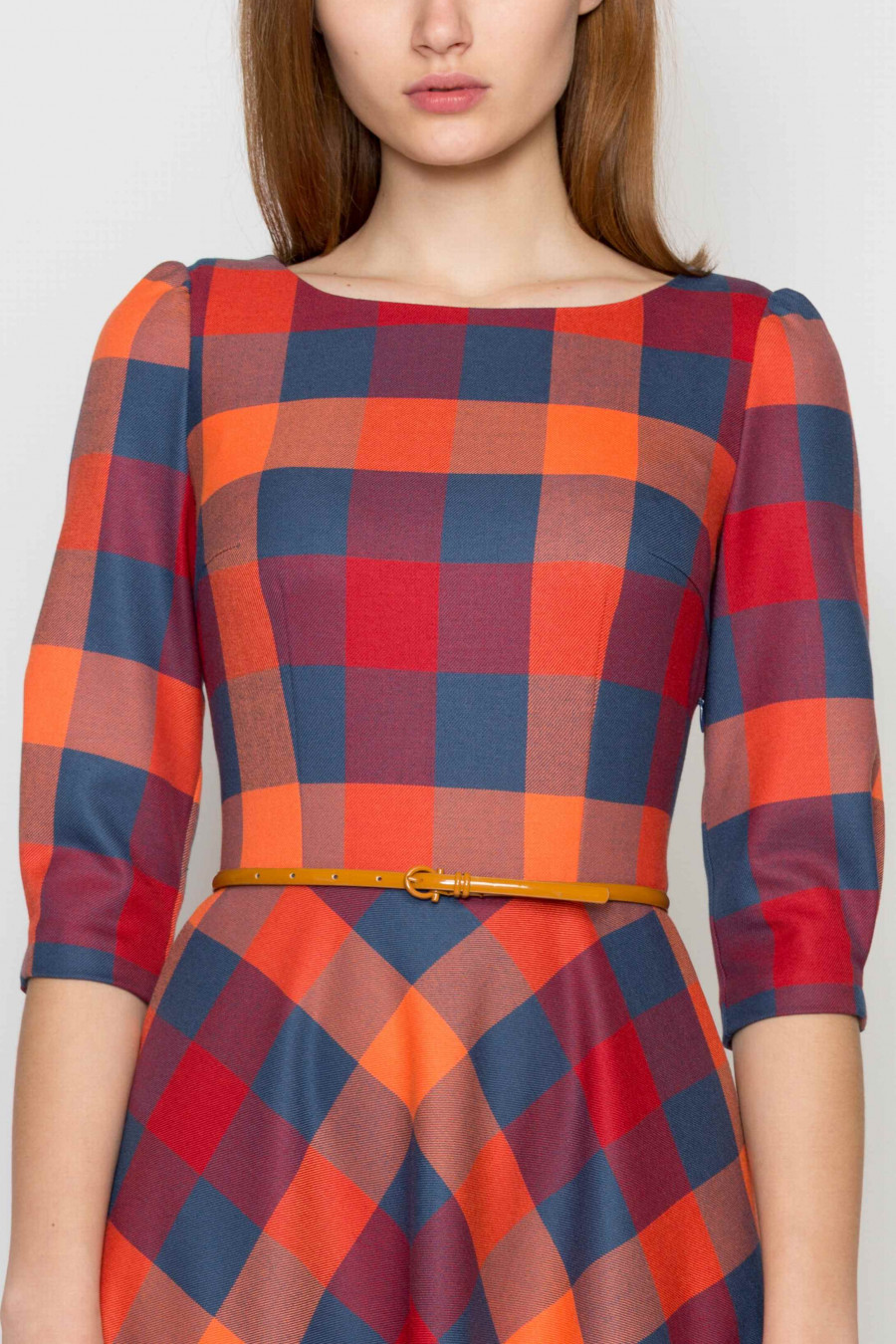 Романтичное платье классического силуэта, который подчеркивает все достоинства женской фигуры. Ткань в ультрамодную клетку средней плотности, очень приятная на ощупь. Рукав 3/4 с легкими сборками по плечу, есть два удобных кармана по бокам, застежка-молния с левого бока. На поясе есть шлевки, ремешок продается отдельно. Длина градируется от размера к размеру: 42 размер - 106 см 52 размер - 114 см. Рост фотомодели 174 см. Длина: 111 см.