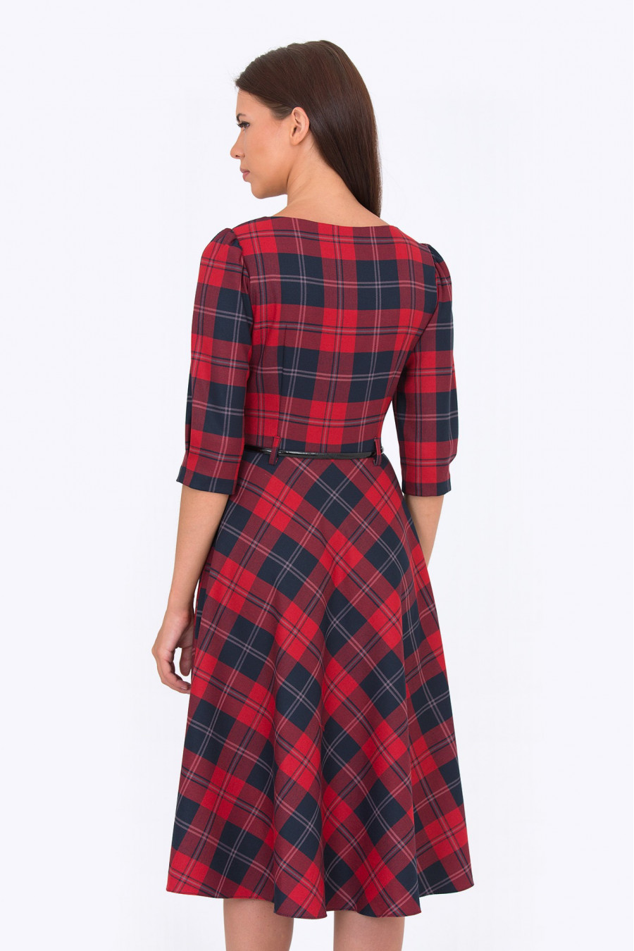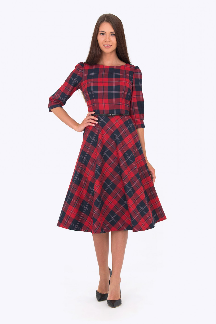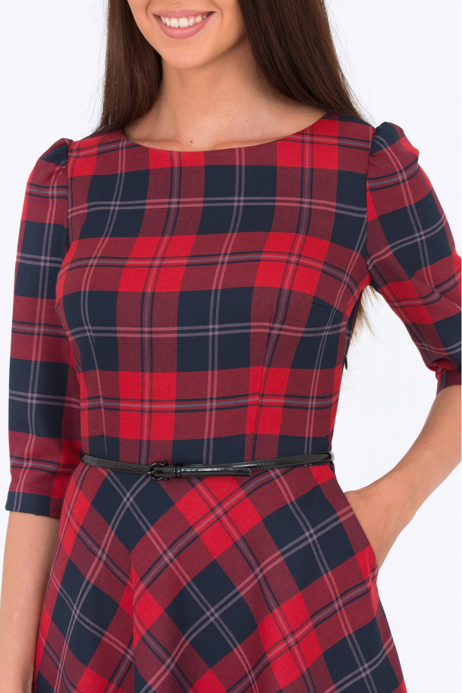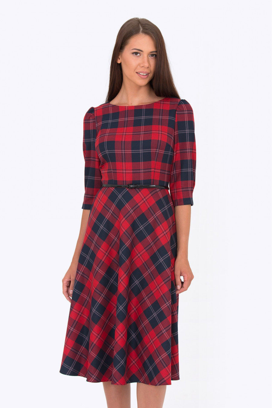 Женственное платье классического силуэта, который подчеркивает все достоинства фигуры. Ткань в красную и темно-синюю клетку приятная на ощупь. Рукав 3/4 с легкими сборками по плечу, есть два элегантных кармана по бокам. На поясе есть шлевки, ремешок продается отдельно. Платье отлично подойдет для повседневной носки, а с аксессуарами станет отличным выбором для романтического свидания.