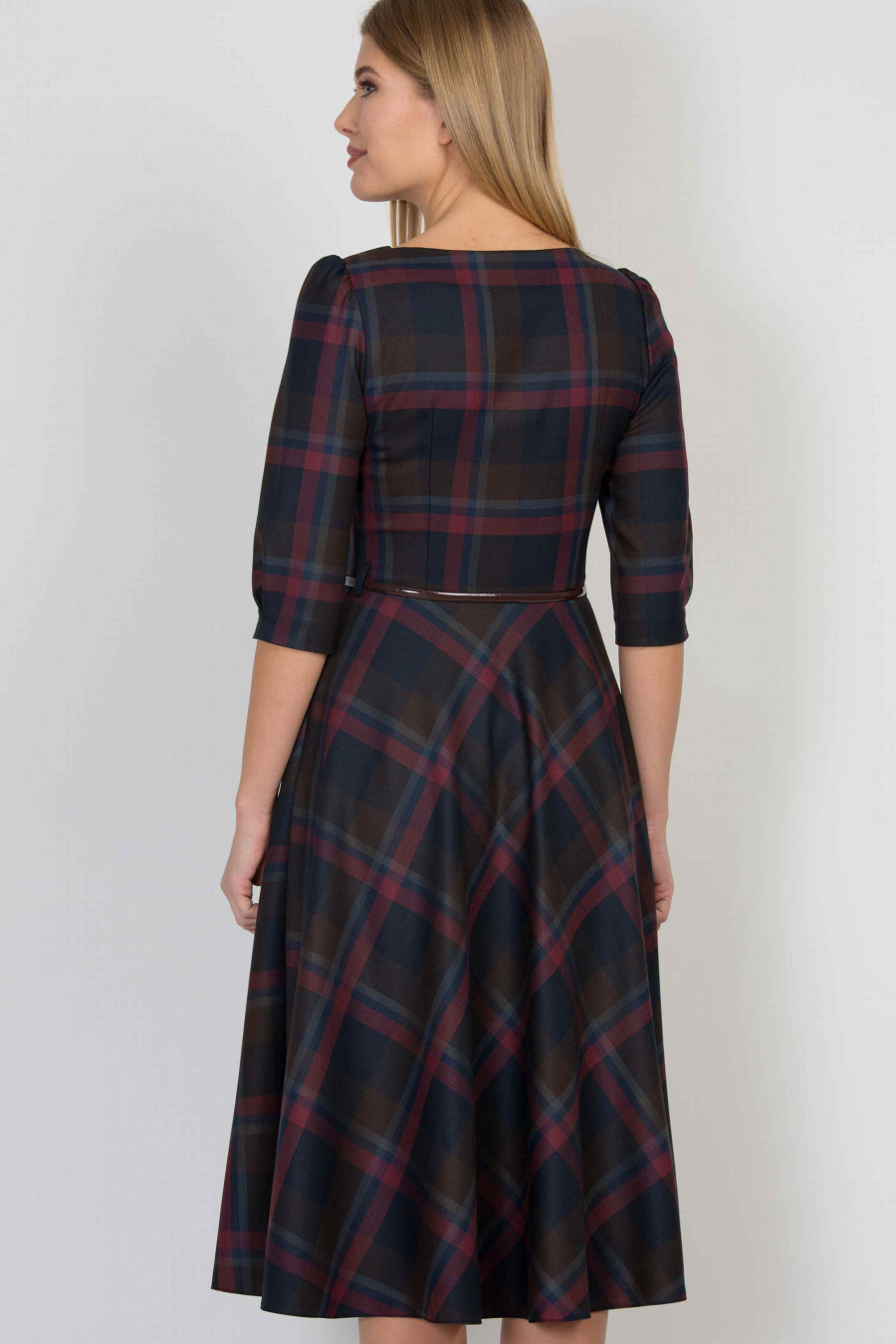 Оригинальная модель в классическом стиле органично впишется в повседневный гардероб. Рукава 3/4. Юбка модели расклешенная с небольшими сборками. Модель выполнена из качественной ткани. Сзади-застёжка на потайную молнию. Без подклада.Ремень продается отдельно.Длина градируется от размера к размеру.¶¶Длина: 108 см. Станет замечательным дополнением к Вашему гардеробу.
