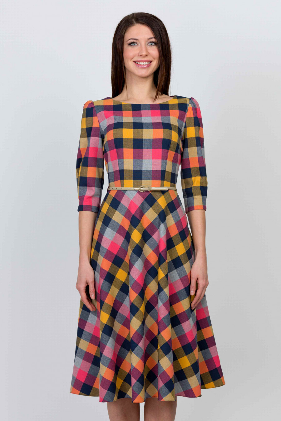 Романтичное платье классического силуэта, который подчеркивает все достоинства женской фигуры. Ткань в ультрамодную клетку средней плотности, очень приятная на ощупь. Рукав 3/4 с легкими сборками по плечу, есть два удобных кармана по бокам, застежка-молния с левого бока. На поясе есть шлевки, ремешок продается отдельно.