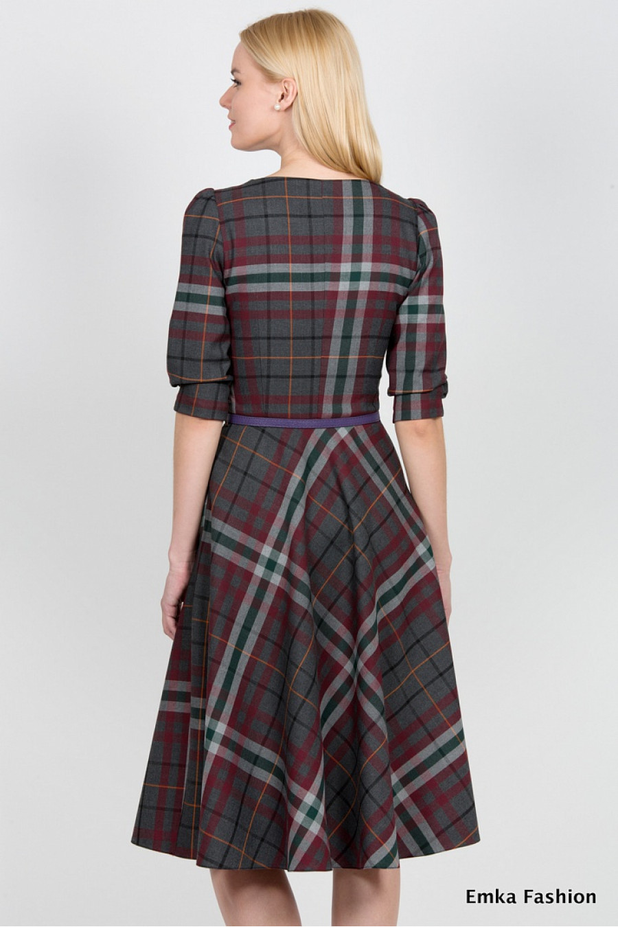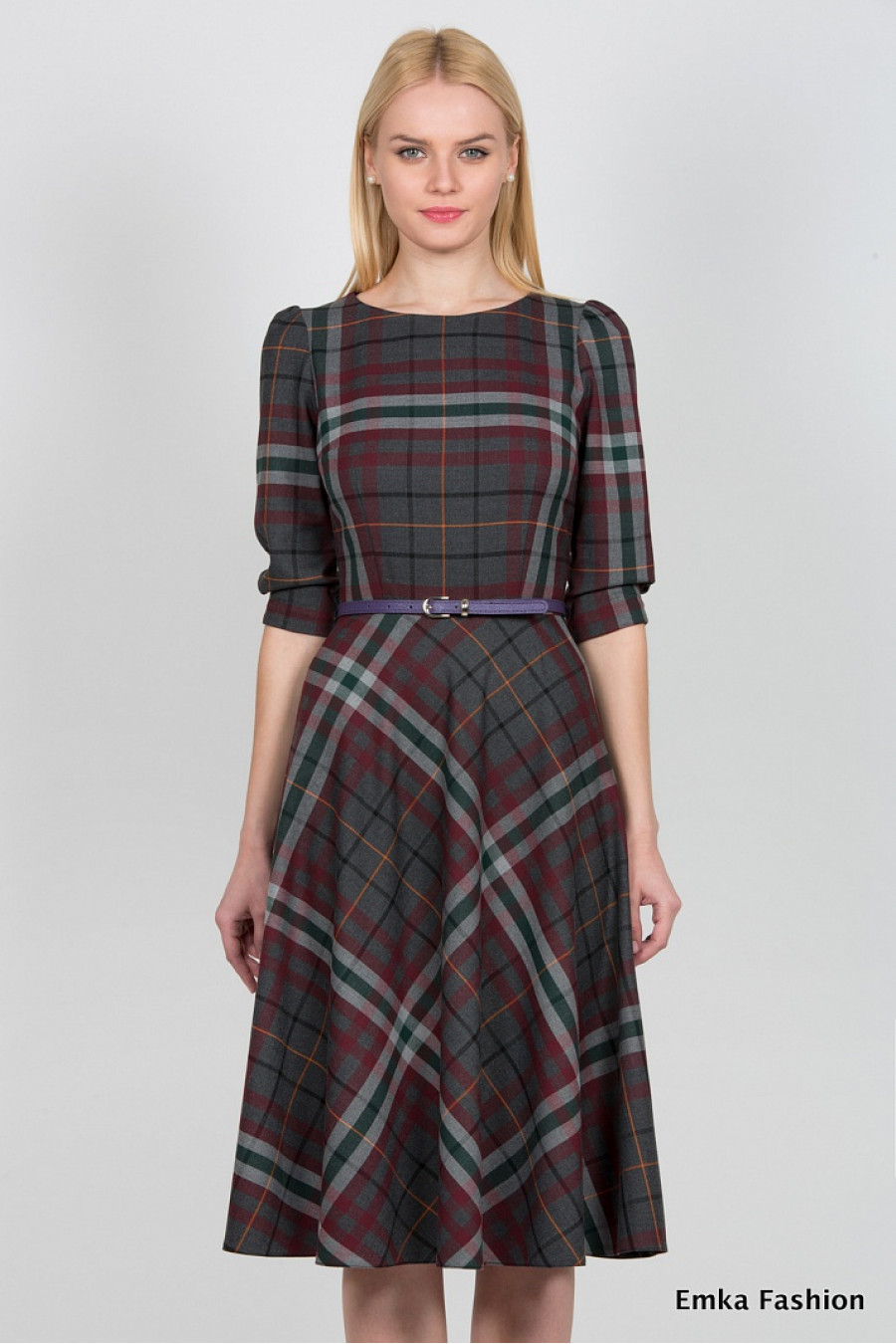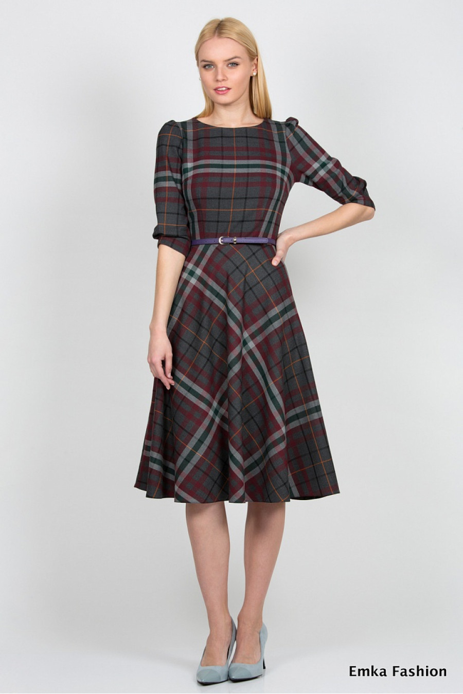 Оригинальное платье приталенного силуэта с расклешенной юбкой. Модель с округлым вырезом горловины и рукавами 3/4. В боковом шве-застёжка на потайную молнию. Прекрасный вариант для модных женщин, желающих подчеркнуть свою индивидуальность и хороший вкус. Длина: 108 см. Ремень не входит в комплект. Модель PL 407 без подклада. Длина от отрезной талии 70 см. Рост модели на фото 170 см. Рекомендуется сухая чистка, но, можно пробовать стирать вручную в прохладной воде.