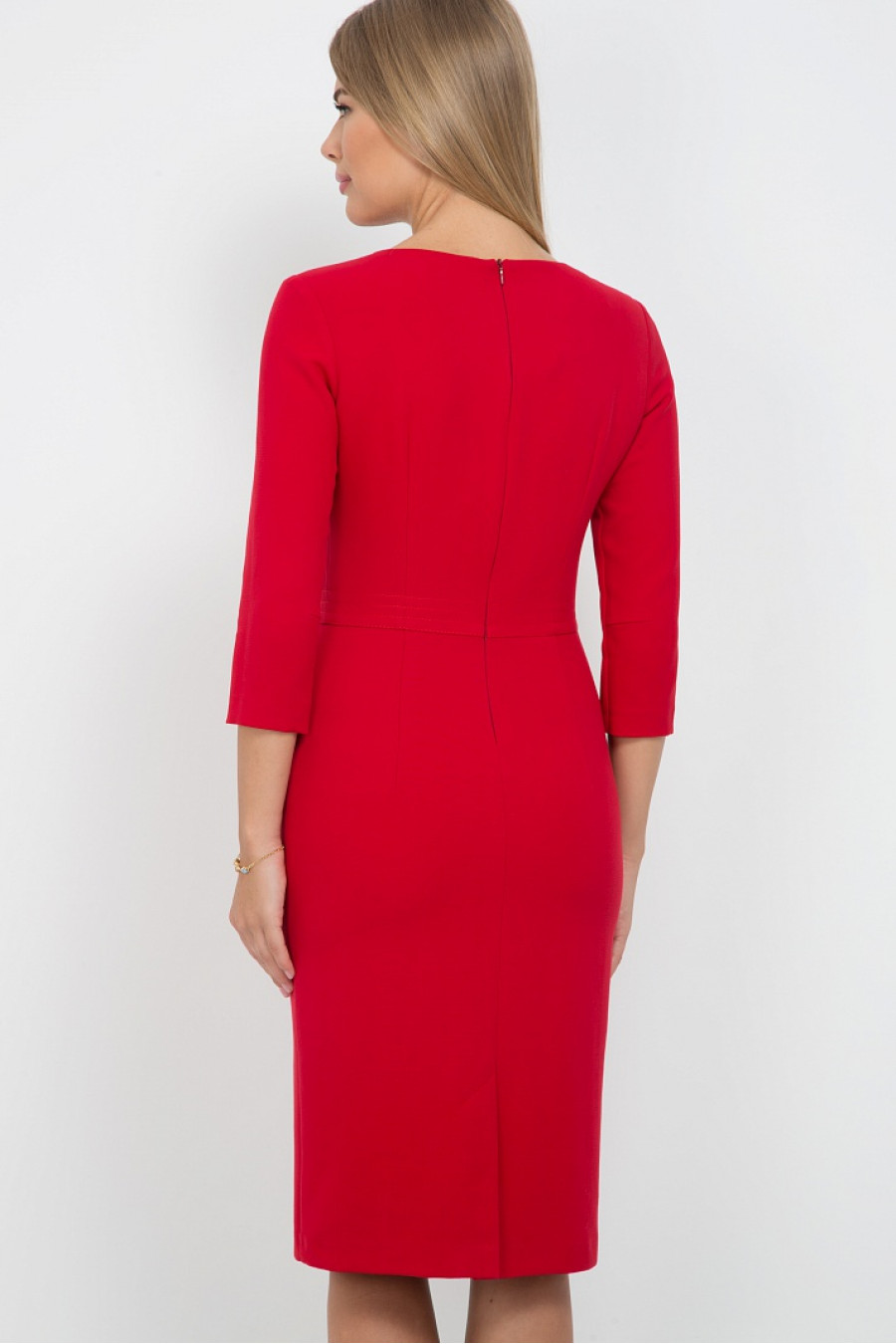 Элегантное платье лаконичного дизайна с округлым вырезом горловины и рукавами 3/4. Модель приталенного кроя, длина 102 см., на подкладке. На спинке изделия имеются потайная молния и разрез. Бесподобный силуэт выгодно подчеркнет достоинства фигуры – воплощение безупречного вкуса.