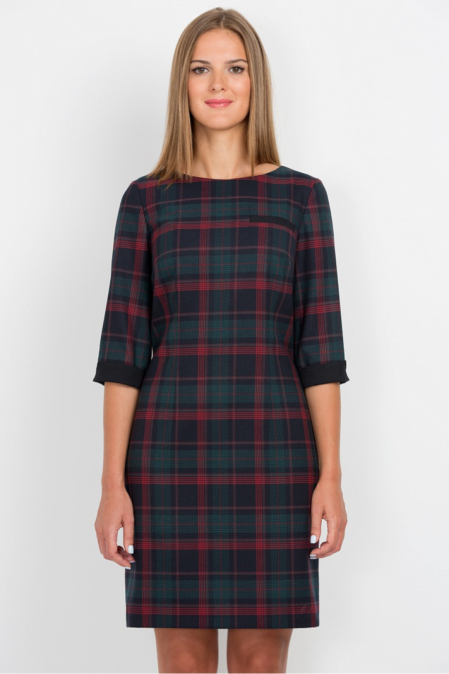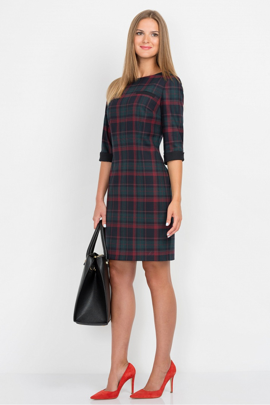 Элегантное платье лаконичного дизайна с округлым вырезом горловины и рукавами 3/4. Модель приталенного кроя, длина 89 см., на подкладке. На спинке изделия имеются потайная молния.