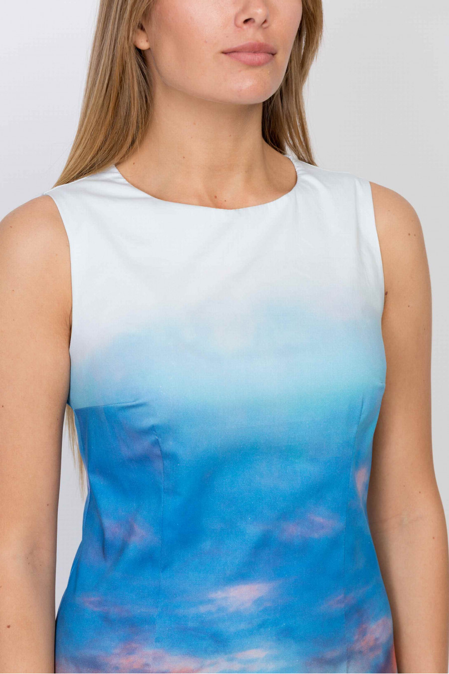 Легкое приталенное платье прямого кроя без рукавов. Ткань мягкая, эластичная с ярким цветочным принтом, создающим 3D эффект. Есть легкая хлопчато-бумажная подкладка, застежка-молния на спинке. Платье не просвечивает, выглядит очень эффектно и стильно. Отличная модель для весенне-летнего сезона, платье хорошо подойдет как для повседневной носки, так и для коктейльной вечеринки.