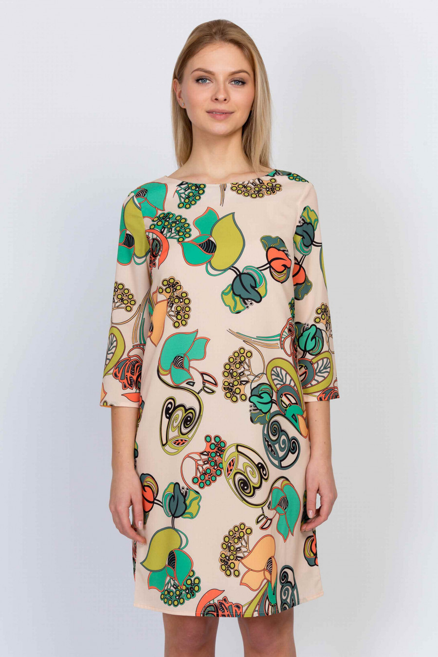 Женственное платье классического силуэта, который подчеркивает все достоинства фигуры. Длина: 90 см. Очень удобное платье, отлично подойдет на повседневную носку.