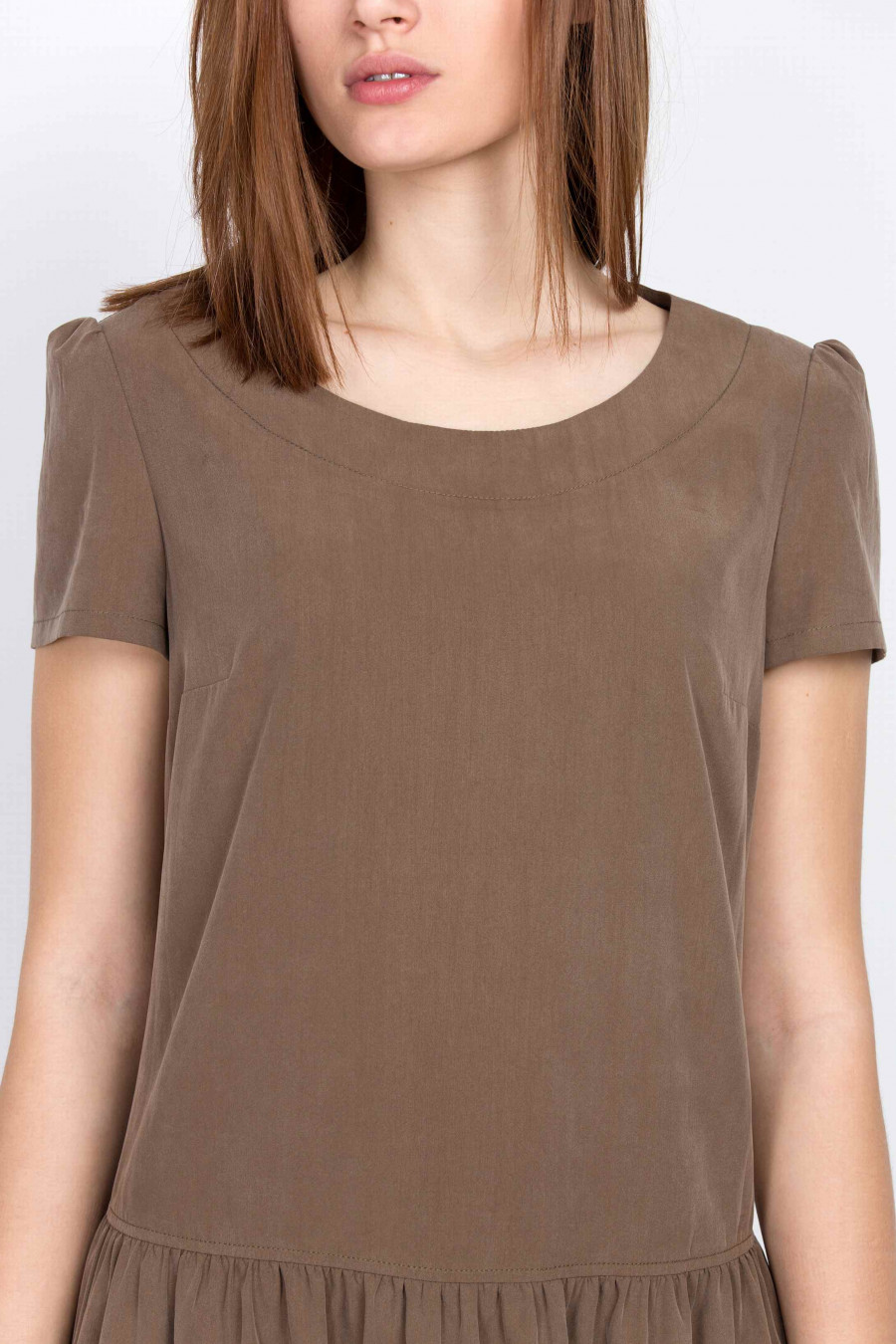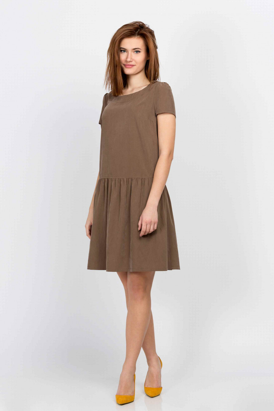 Легкое удобное платье в спортивном стиле. Ткань приятная к телу, эластичная мягкого коричневого цвета. Платье очень комфортное, неприхотливое в носке, идеально подойдет на каждый день. Без подкладки. Хороший выбор для весенне-летнего сезона.