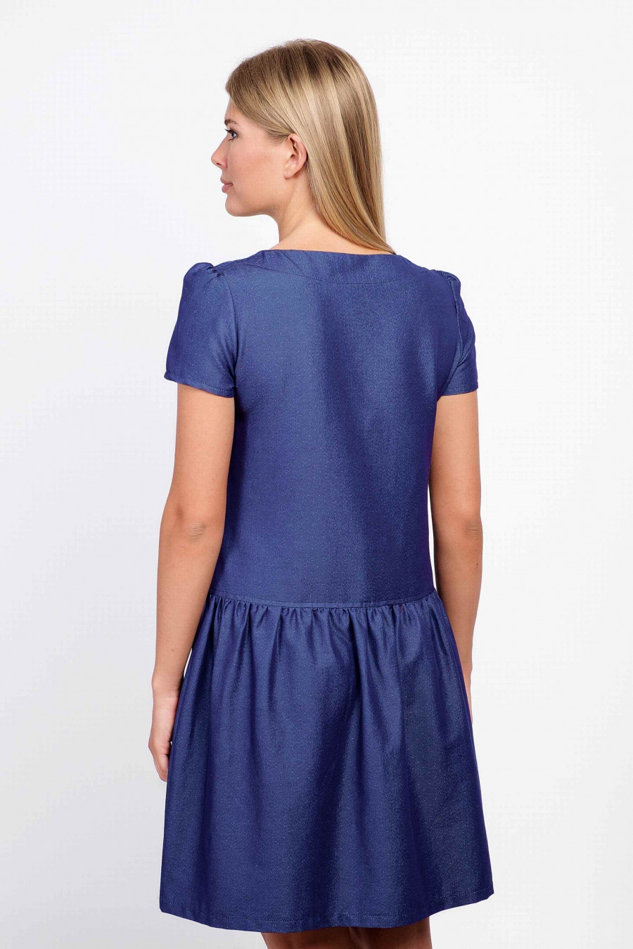 Легкое удобное платье в спортивном стиле. Ткань приятная к телу, эластичная темно-синего цвета с мелким принтом. Платье очень комфортное, неприхотливое в носке, идеально подойдет на каждый день. Без подкладки. Хороший выбор для весенне-летнего сезона.