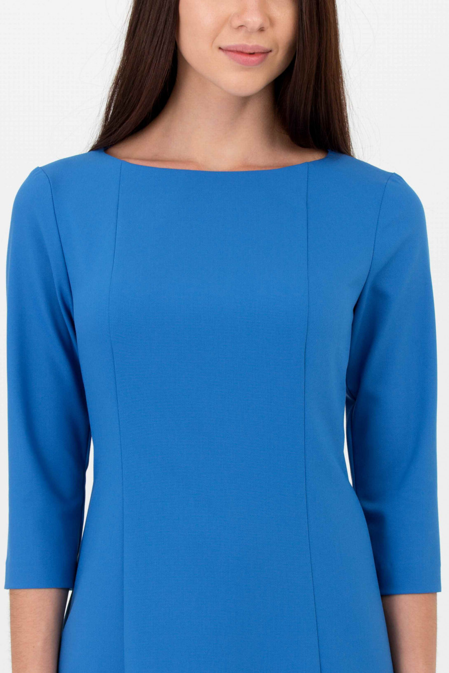 Изящное строгое платье с вытачками и юбкой до середины щиколотки, с рукавами 3/4. С вытачками. Без подклада.