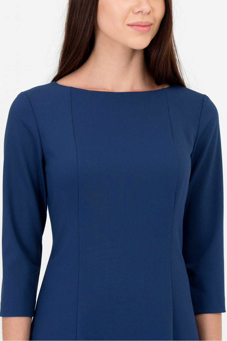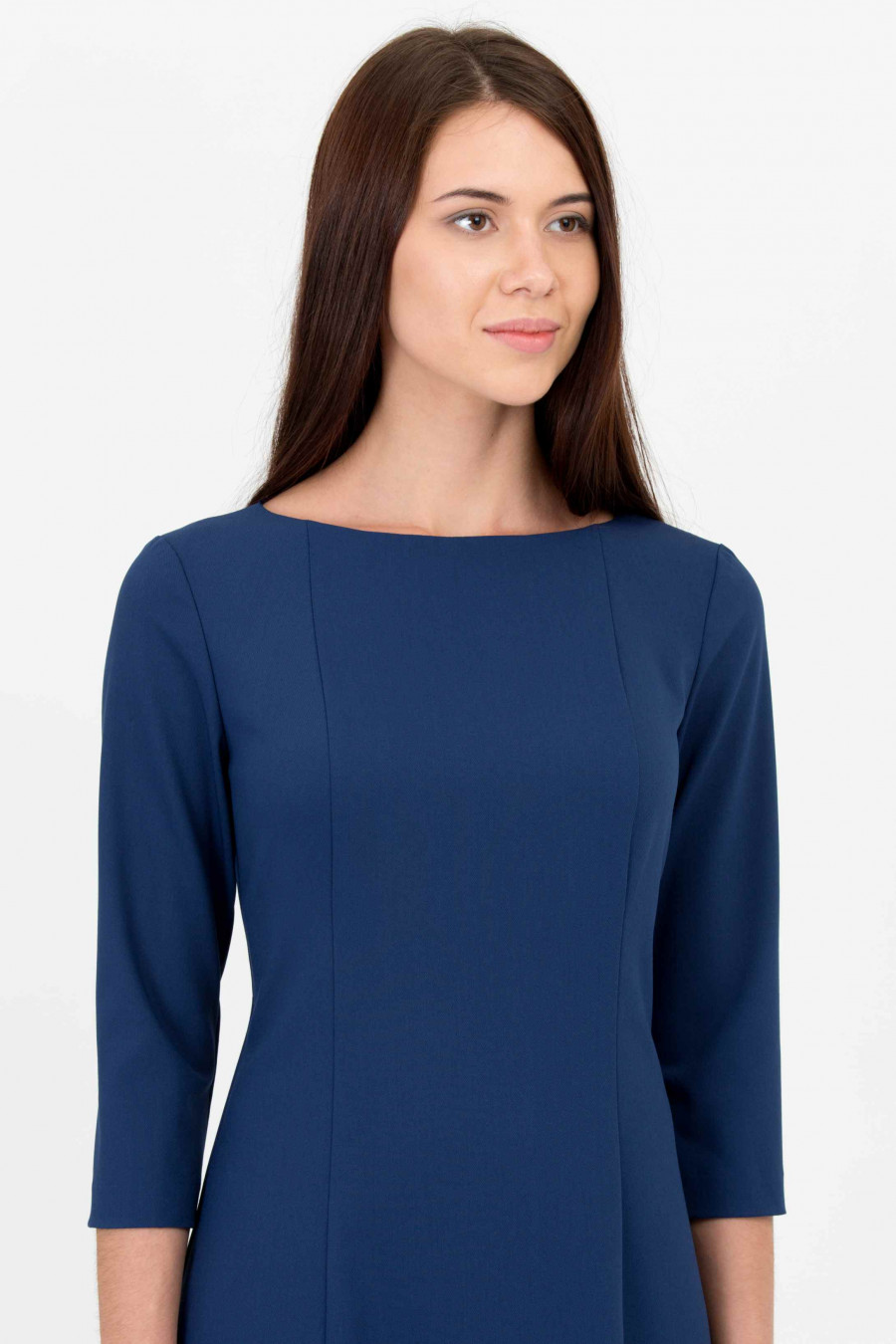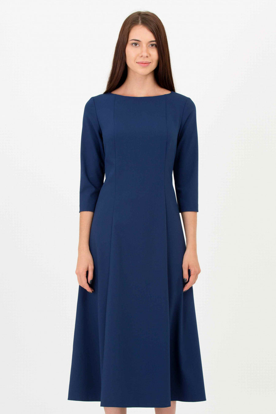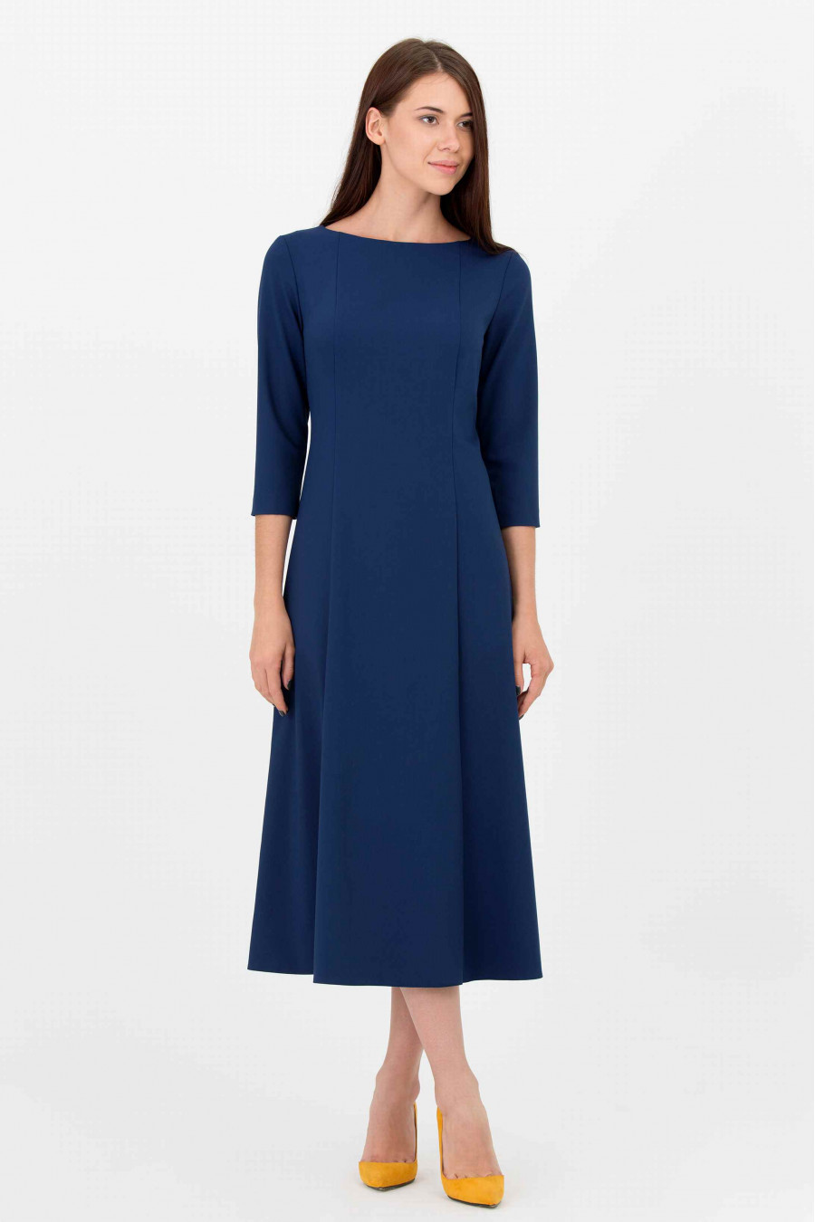 Изящное строгое платье с вытачками и юбкой до середины щиколотки, с рукавами 3/4. С вытачками. Без подклада.