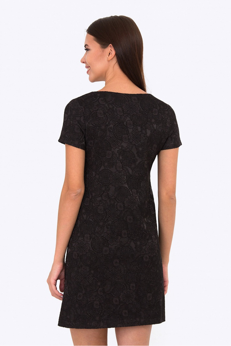 Нарядное платье прямого кроя. Ткань черный жаккард. Рукава короткие, платье без подкладки. Отличная модель, без лишних деталей, но при этом очень стильная и заметная. В этом платье вы не останетесь не замеченной. Длина градируется от размера к размеру. Рост фотомодели 172 см.