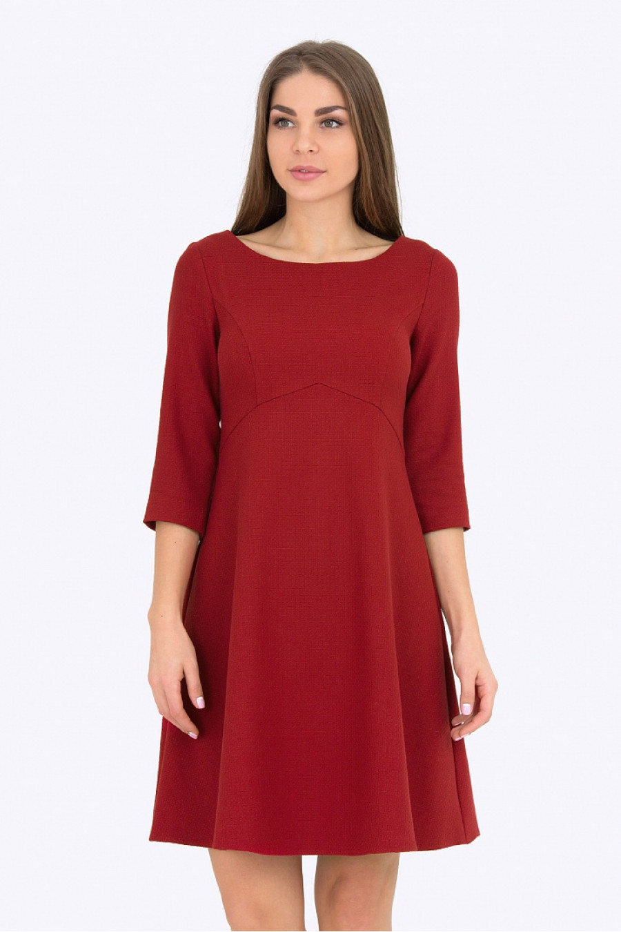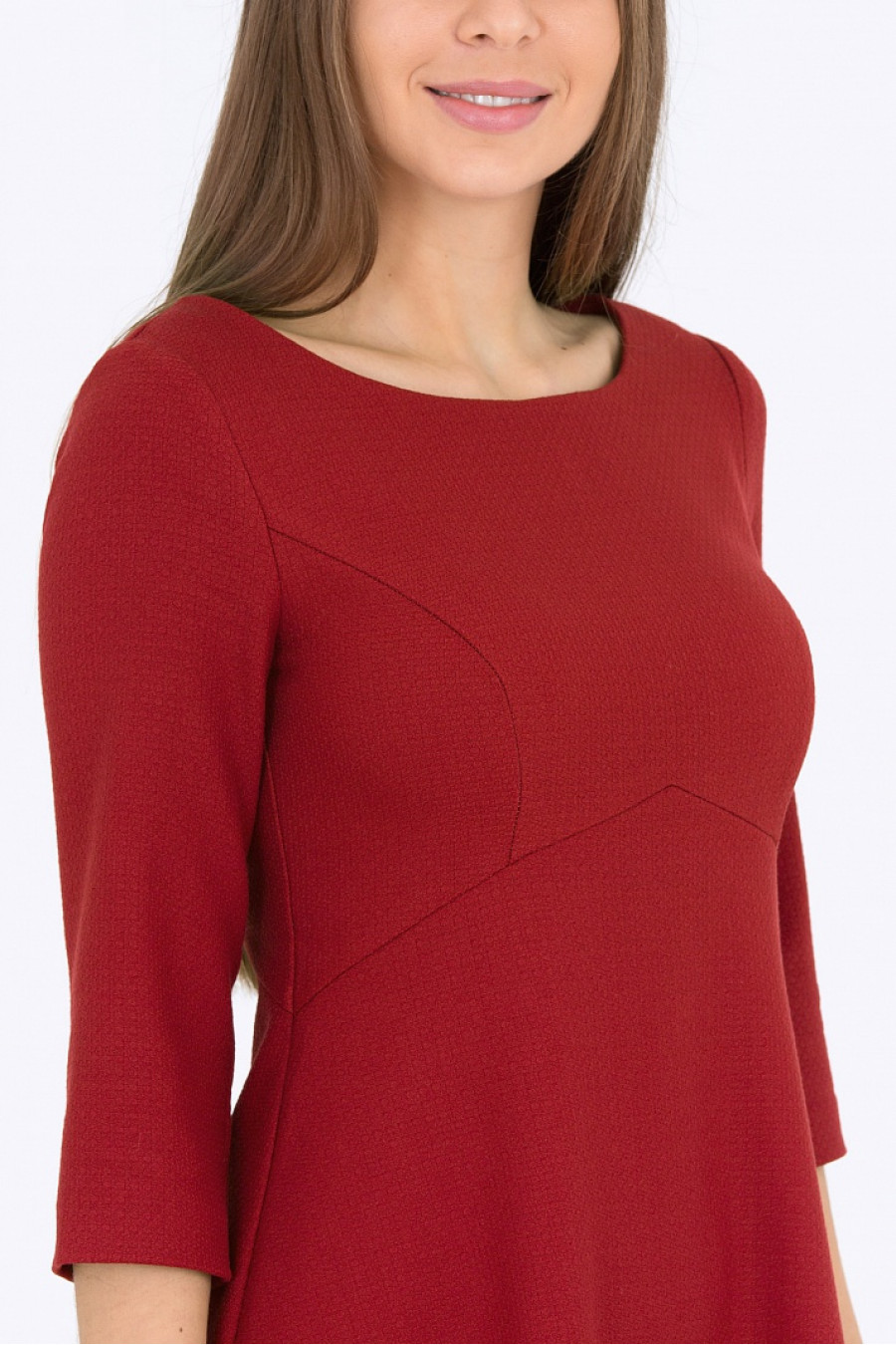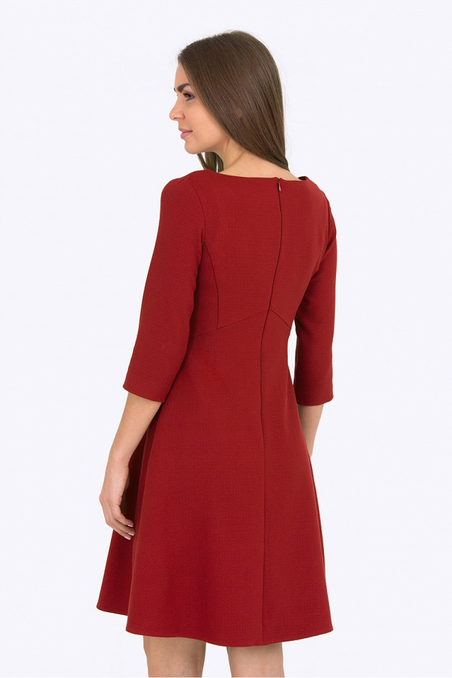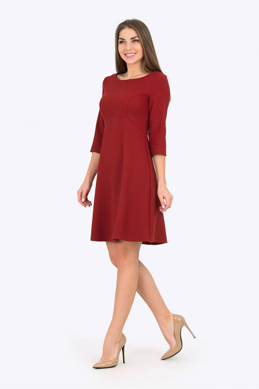 Красное платье из структурной, приятной на ощупь ткани. Облегающий лиф без излишнего декора и откровенностей, подчеркнутая линия талии и расширяющаяся к низу юбка длиной до колена – фасон настолько женственный, что придумать лучше вряд ли удастся. Без подкладки.