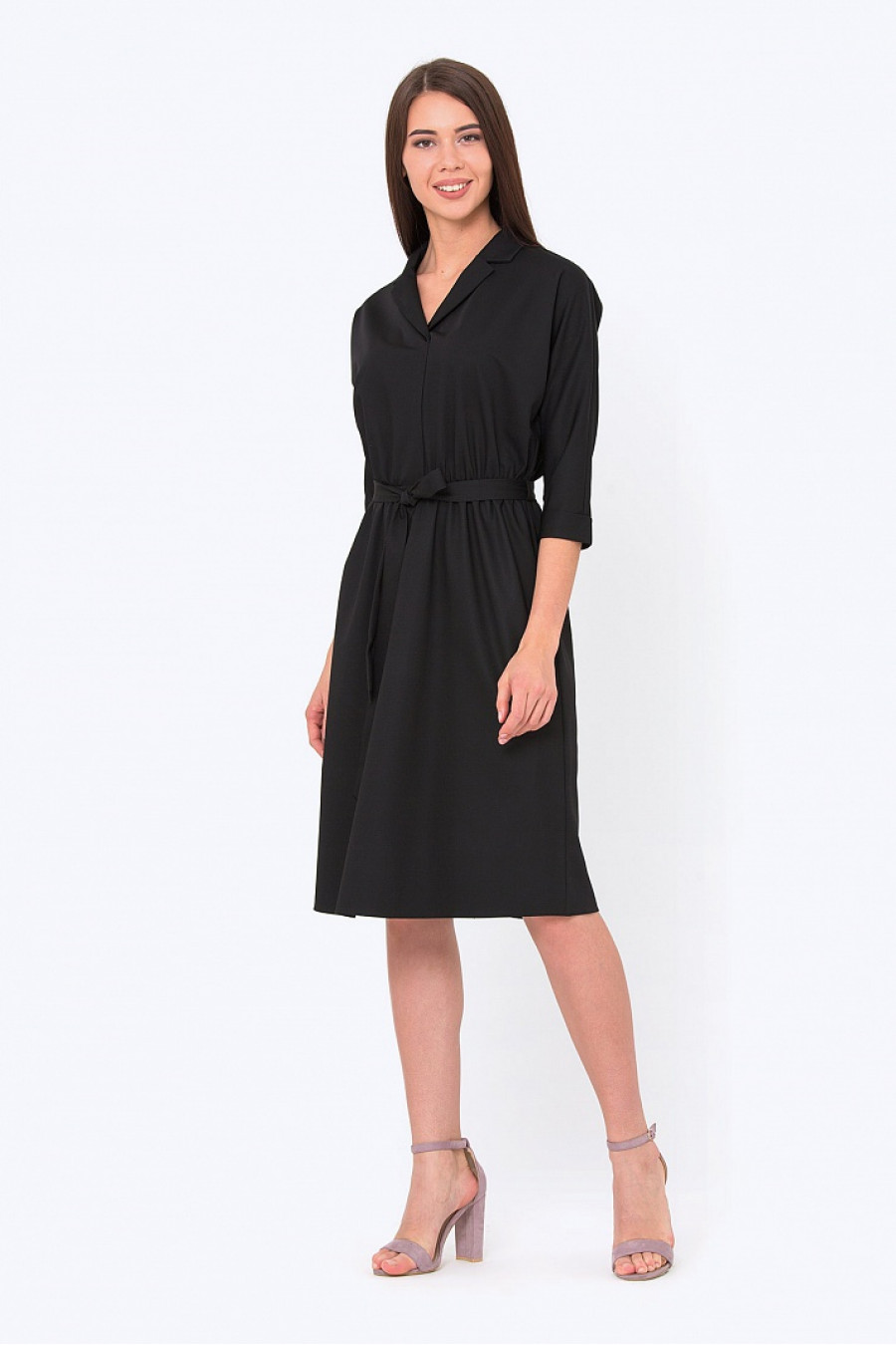 Платье с V-образным вырезом приталенногосилуэта, с резинкой на талии и тканевым поясом. Модель из легкого текстиля. Стильное платье на каждый день. Без подклада. Длина градируется от размера к размеру. Рост фотомодели 172 см.