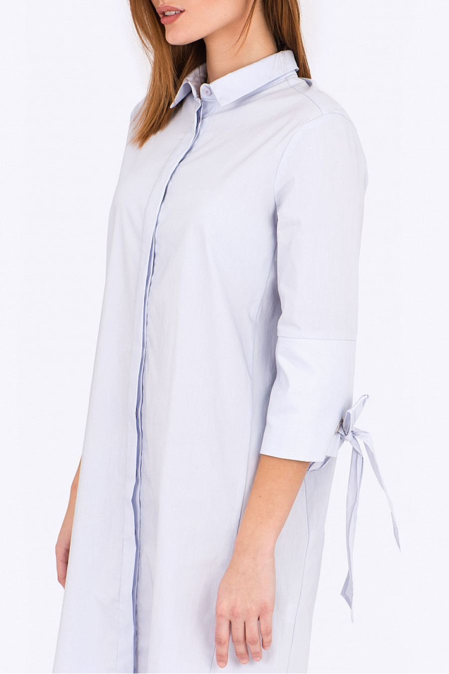 Платье - рубашка прямого силуэта, на манжетах люверсы с завязками. Застежка-планка на пуговицах. Без подкладки. Модель отлично сидит, хороший выбор на каждый день.Длина градируется от размера к размеру.