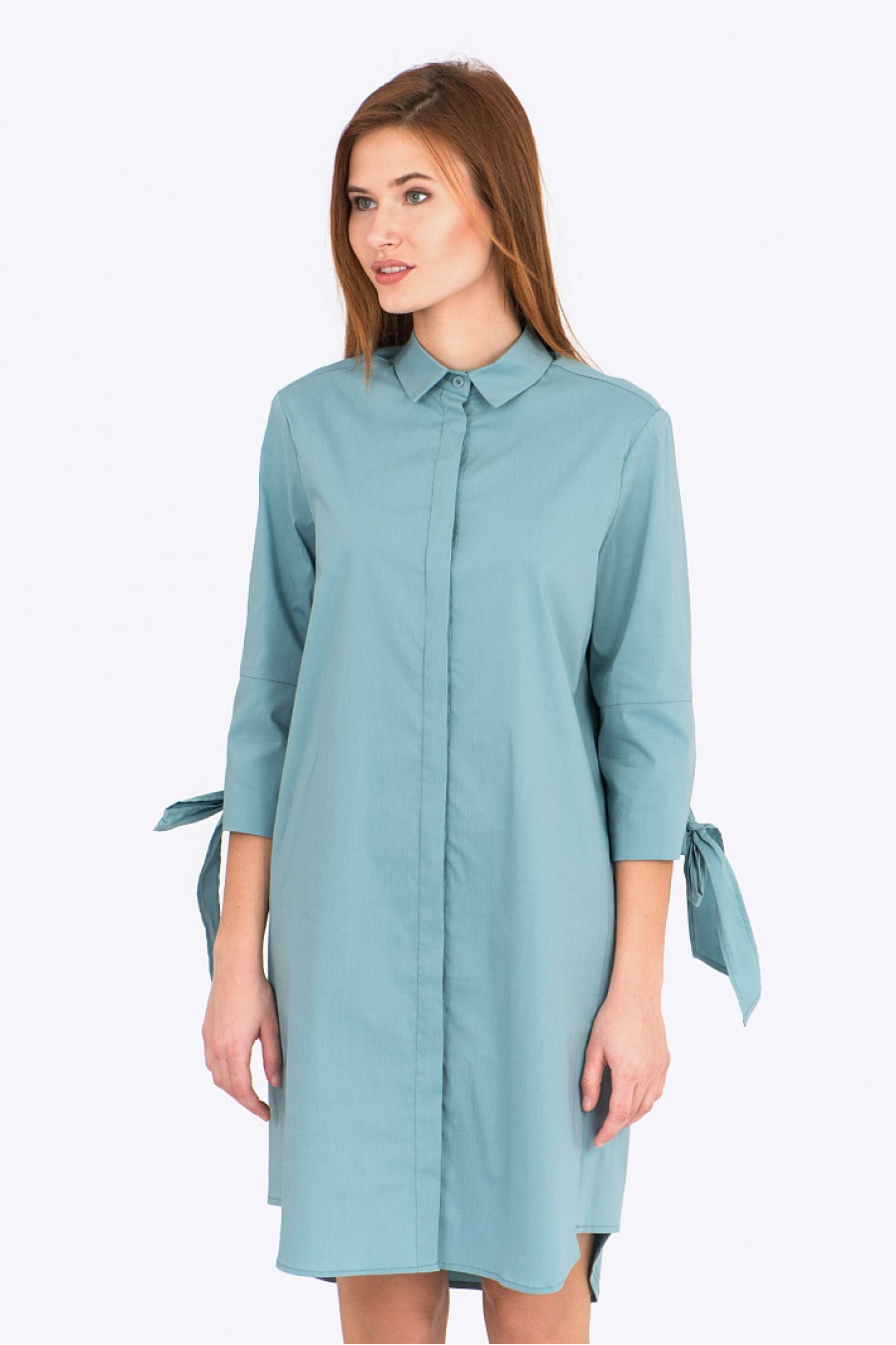 Платье - рубашка прямого силуэта, на манжетах люверсы с завязками. Застежка-планка на пуговицах. Без подкладки. Модель отлично сидит, хороший выбор на каждый день.Длина градируется от размера к размеру.