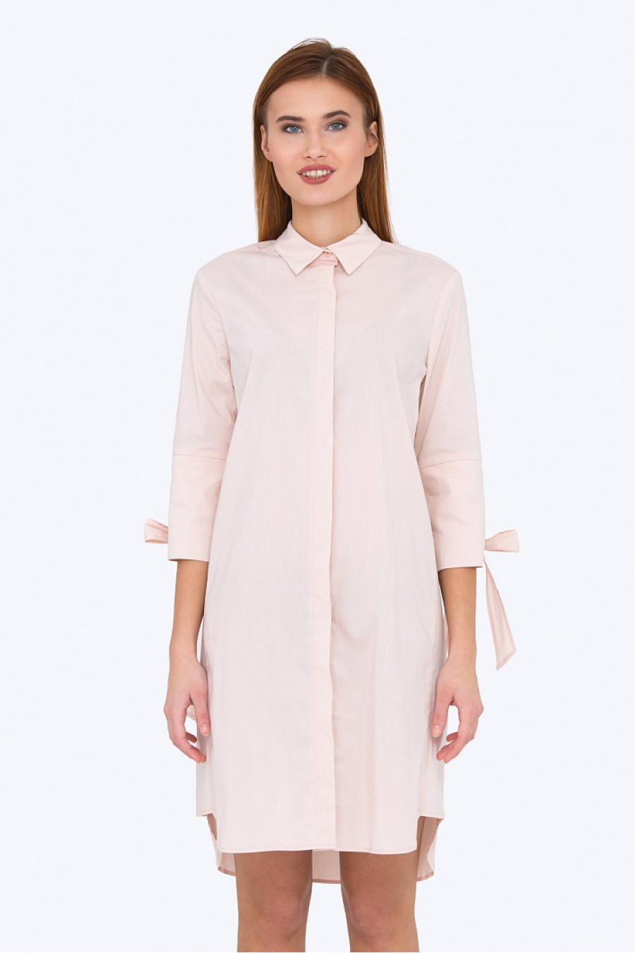 Платье - рубашка прямого силуэта, на манжетах люверсы с завязками. Застежка-планка на пуговицах. Без подкладки. Модель отлично сидит, хороший выбор на каждый день.Длина градируется от размера к размеру.