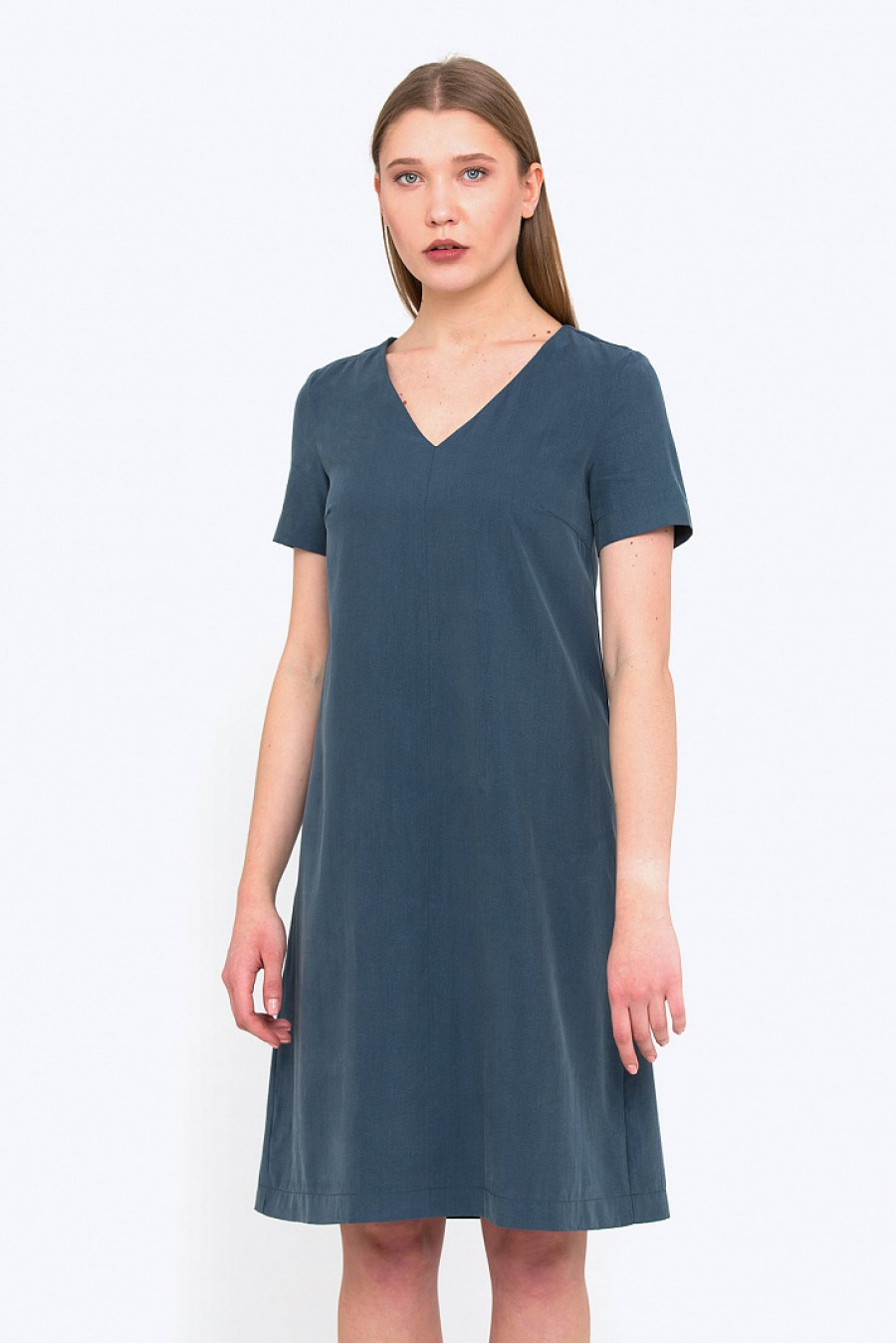 Платье свободного силуэта с V-образным вырезом горловины. Ткань-вискоза, мягкая приятная к телу. Без подкладки. Прекрасная модель на каждый день. Рост фотомодели 175 см.Длина градируется от размера к размеру.